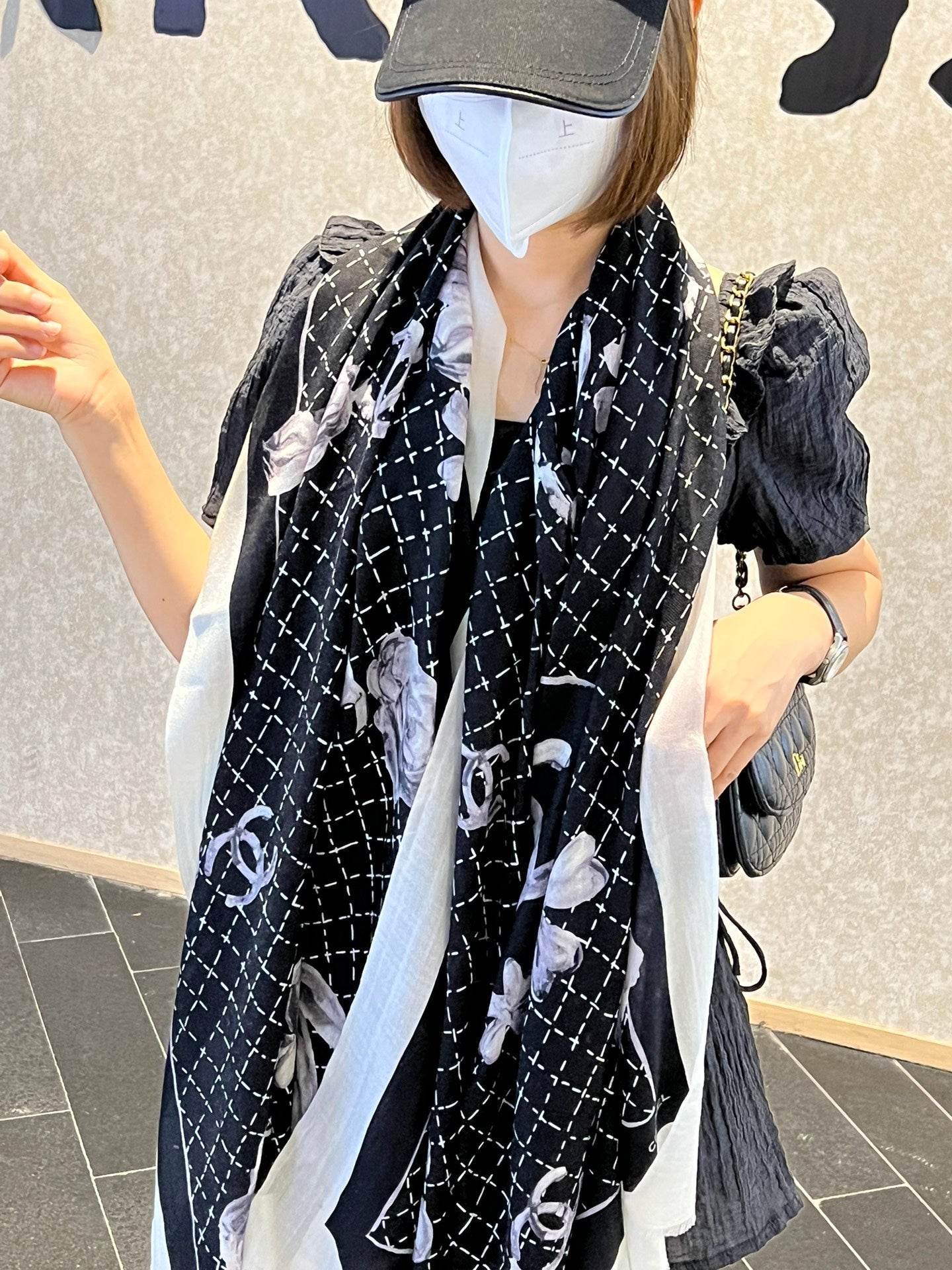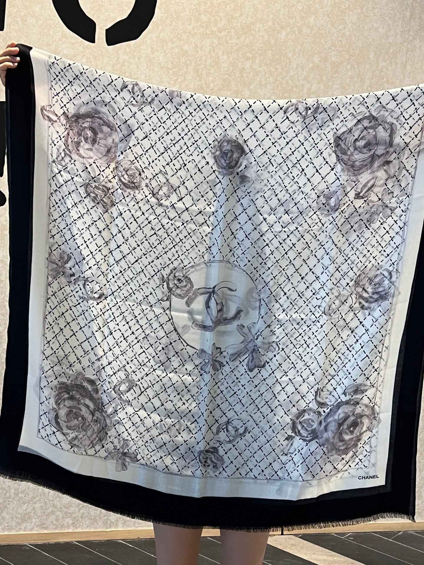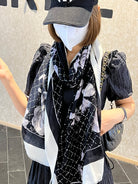 CC Scarf 200 CM In Black White Cashmere Silk 255991