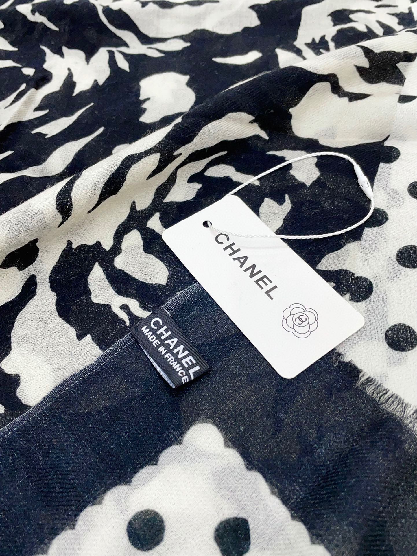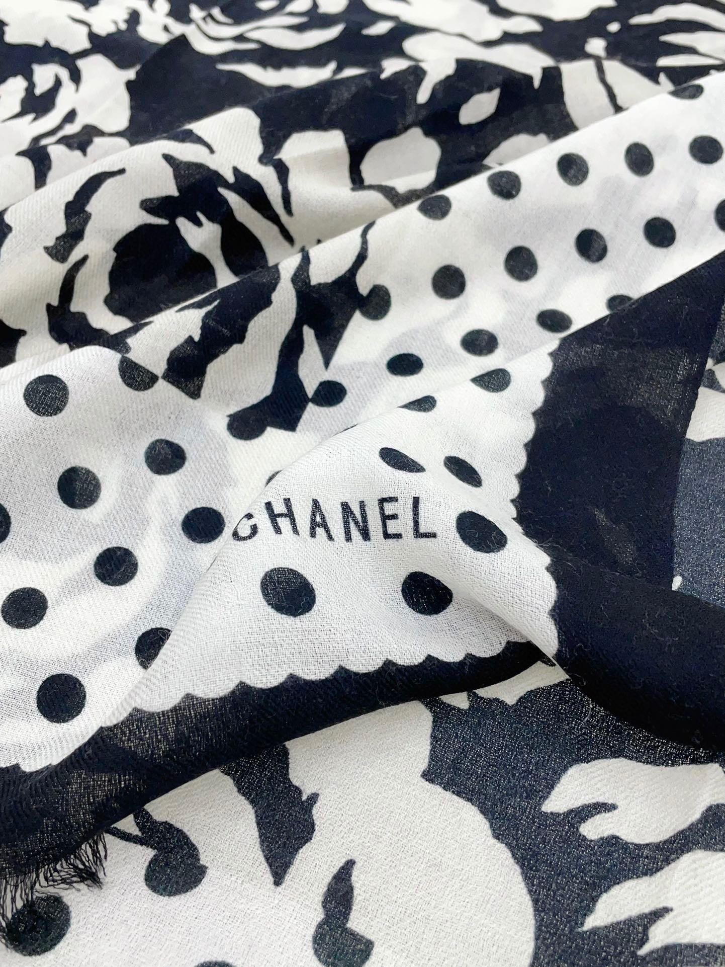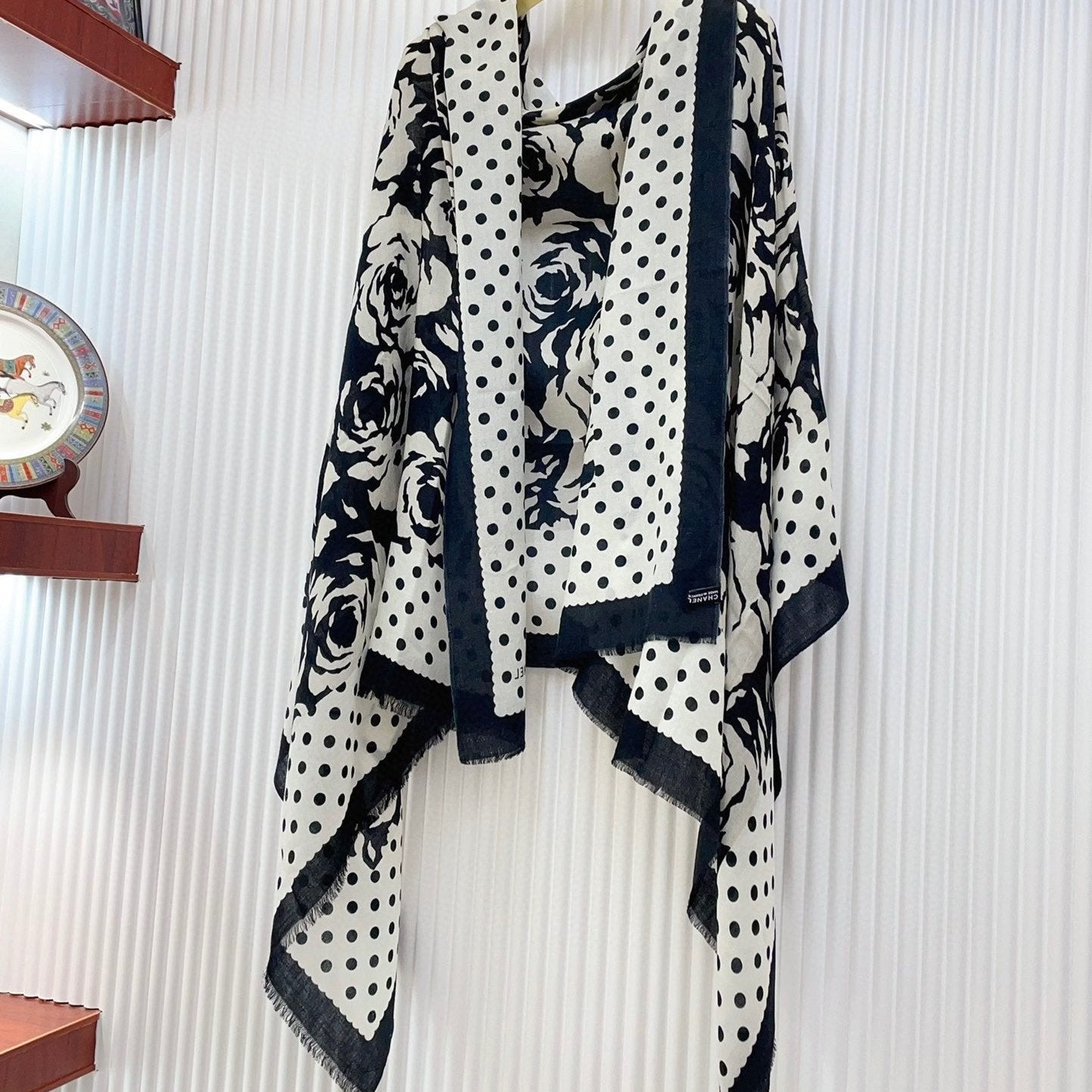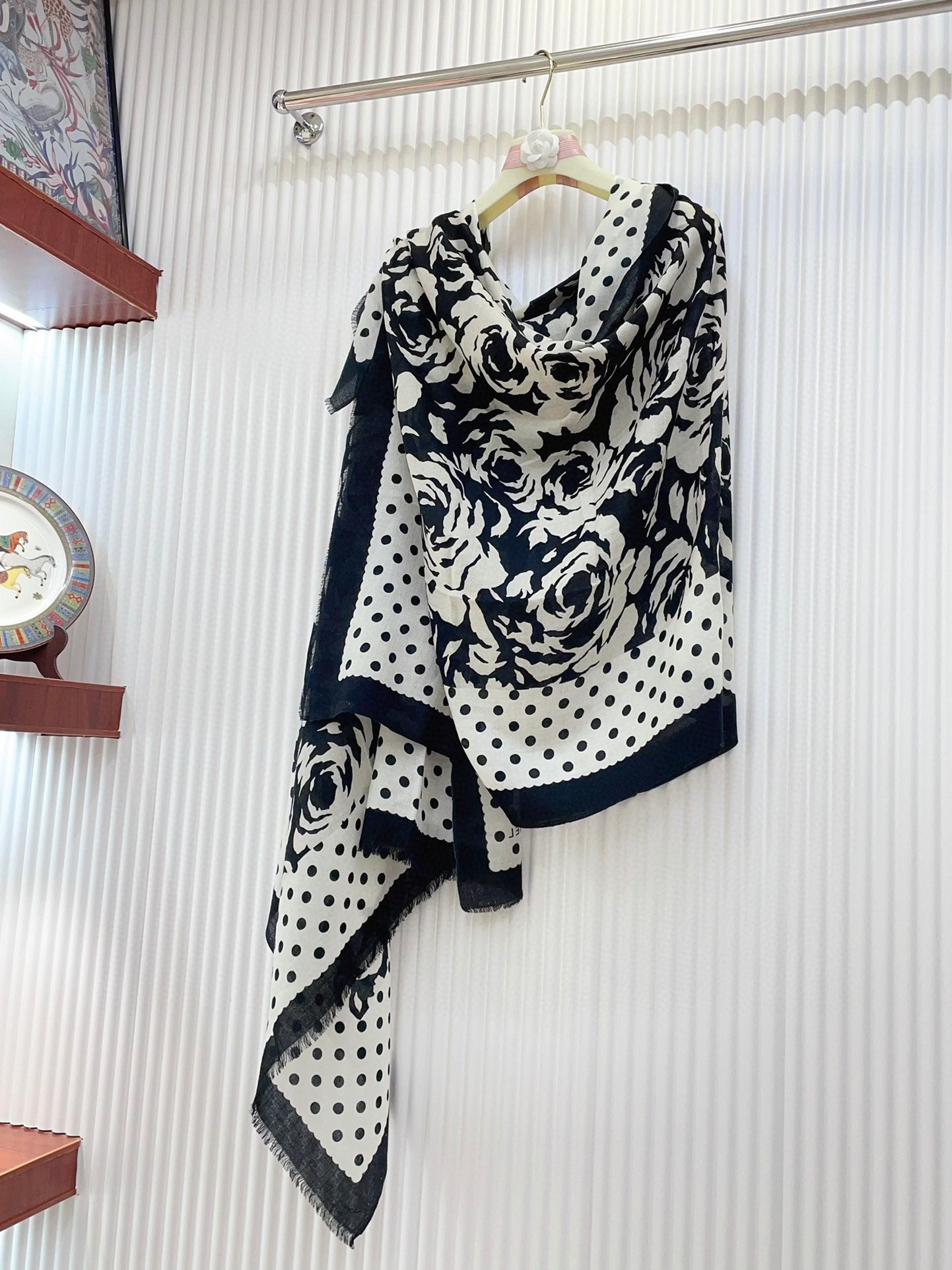 CC Scarf 200 CM In White Mix Black Small Flower Cashmere Silk 351691