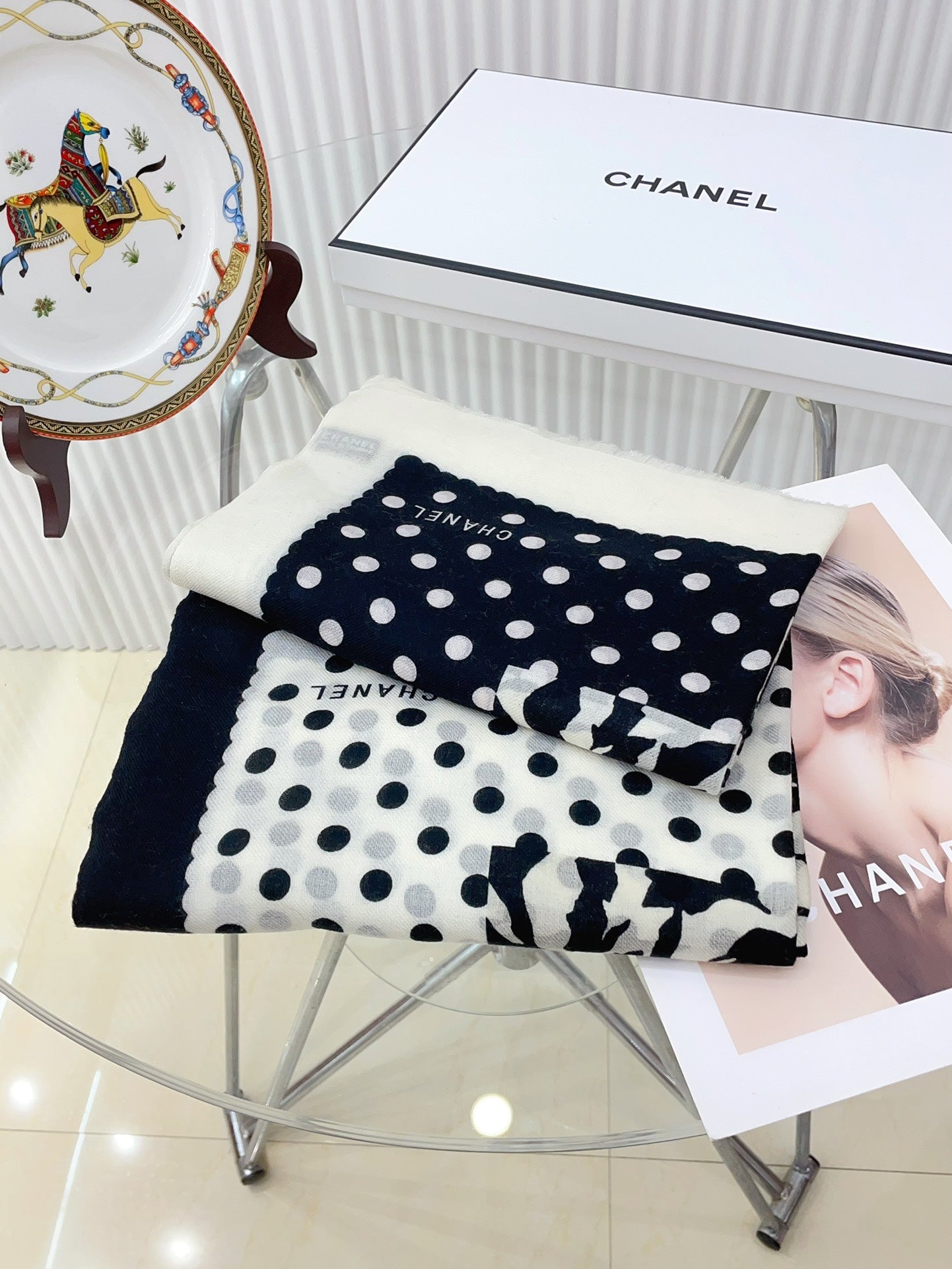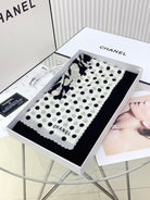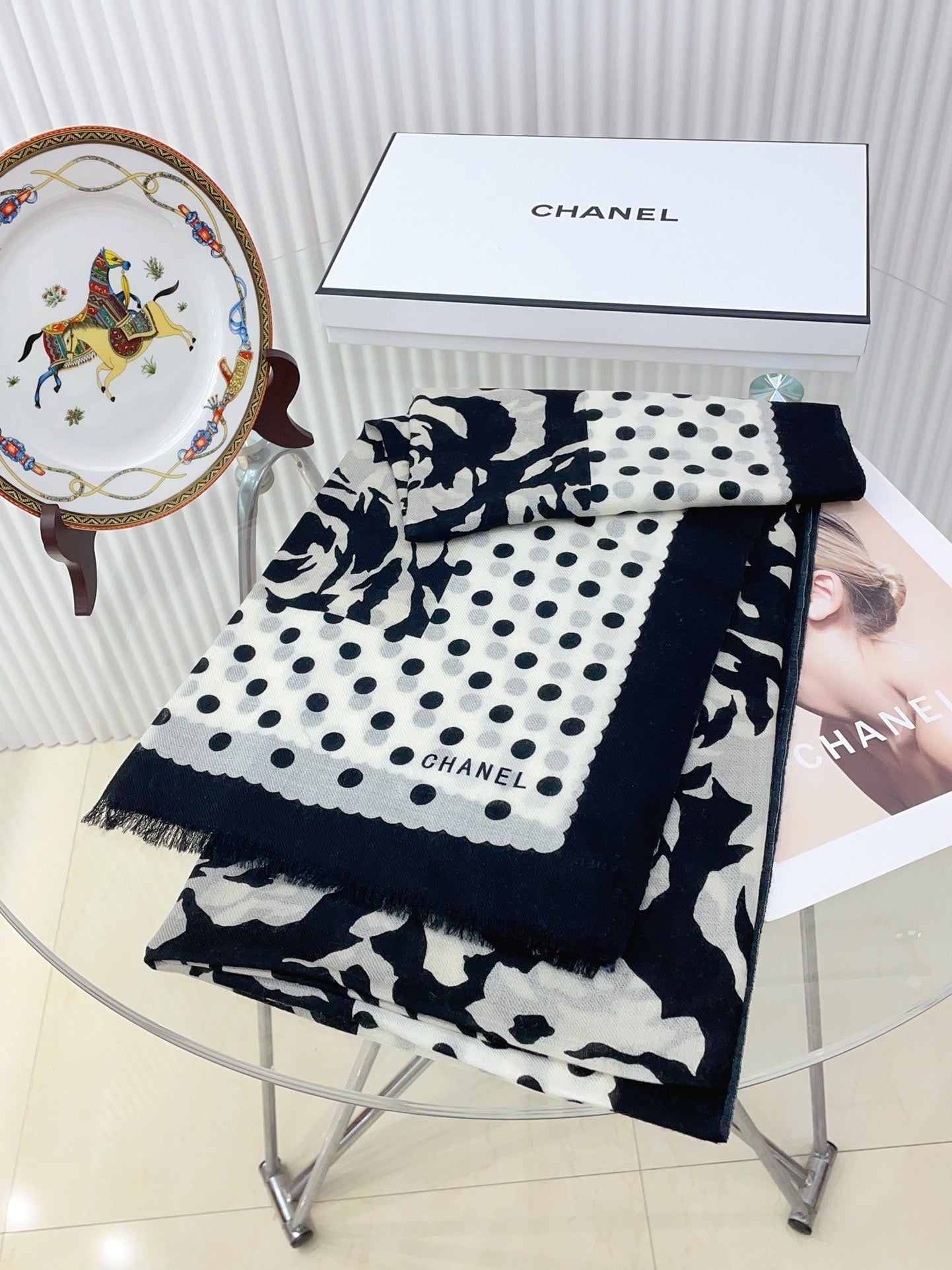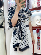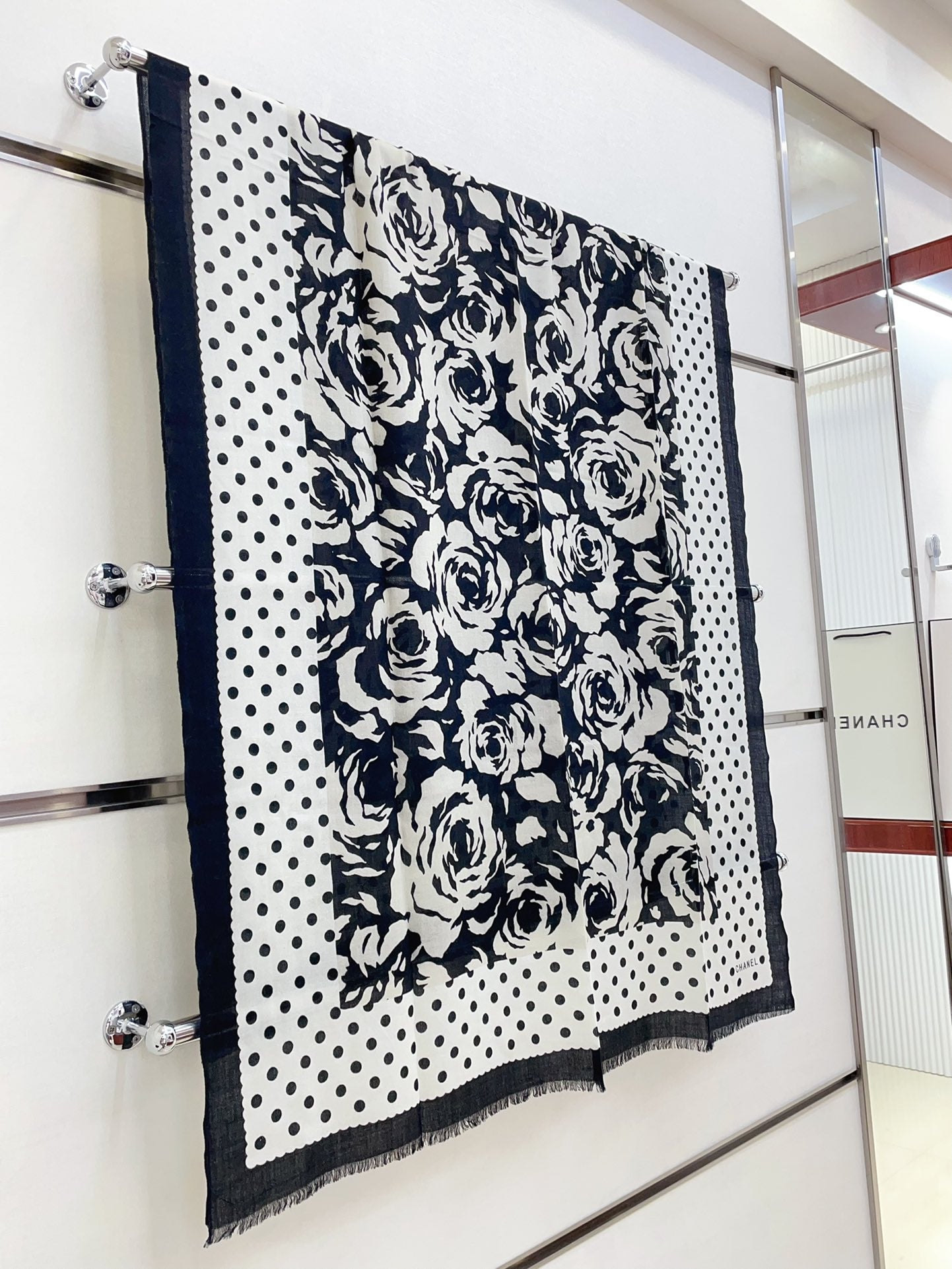 CC Scarf 200 CM In White Mix Black Small Flower Cashmere Silk 351691