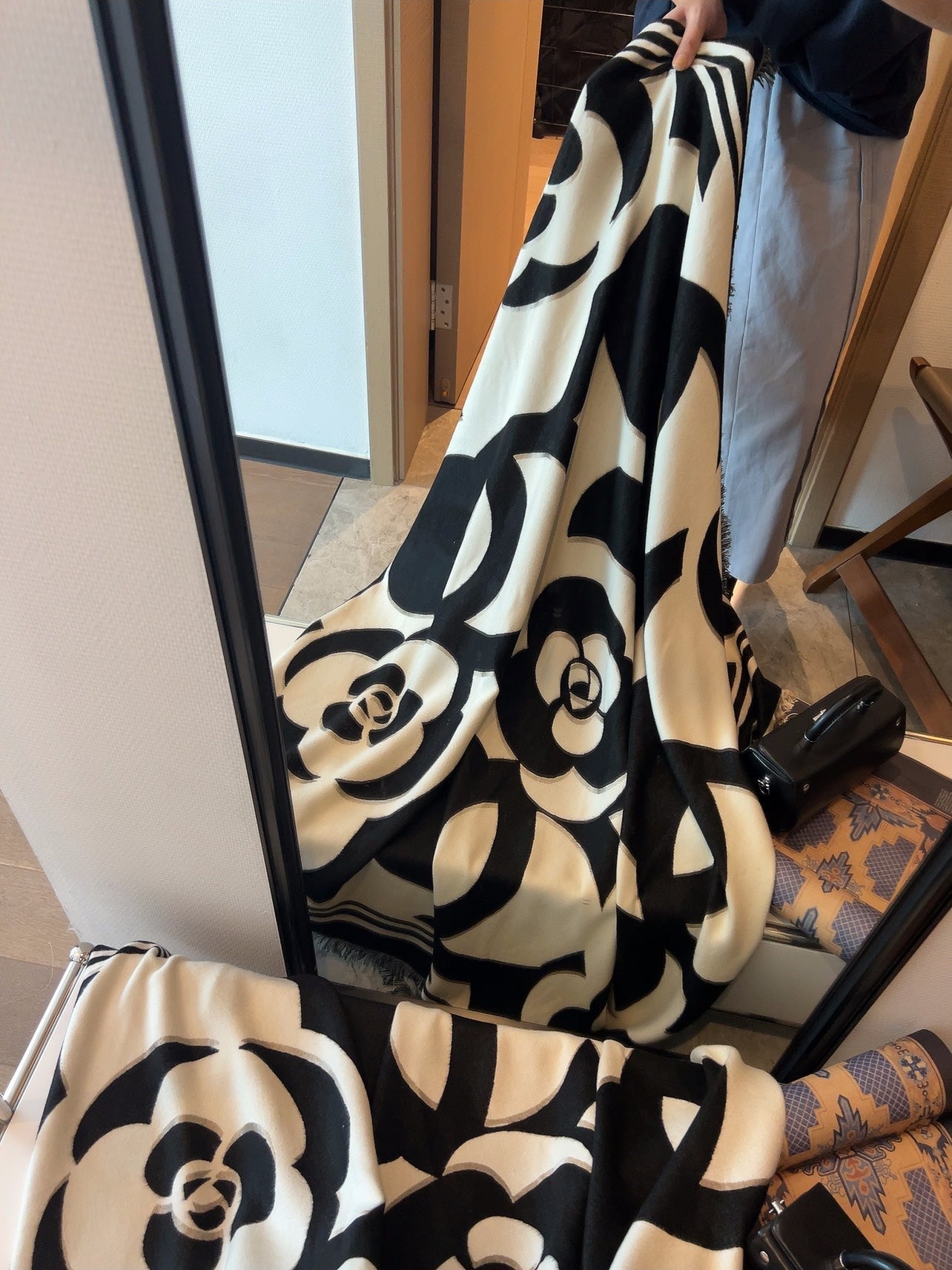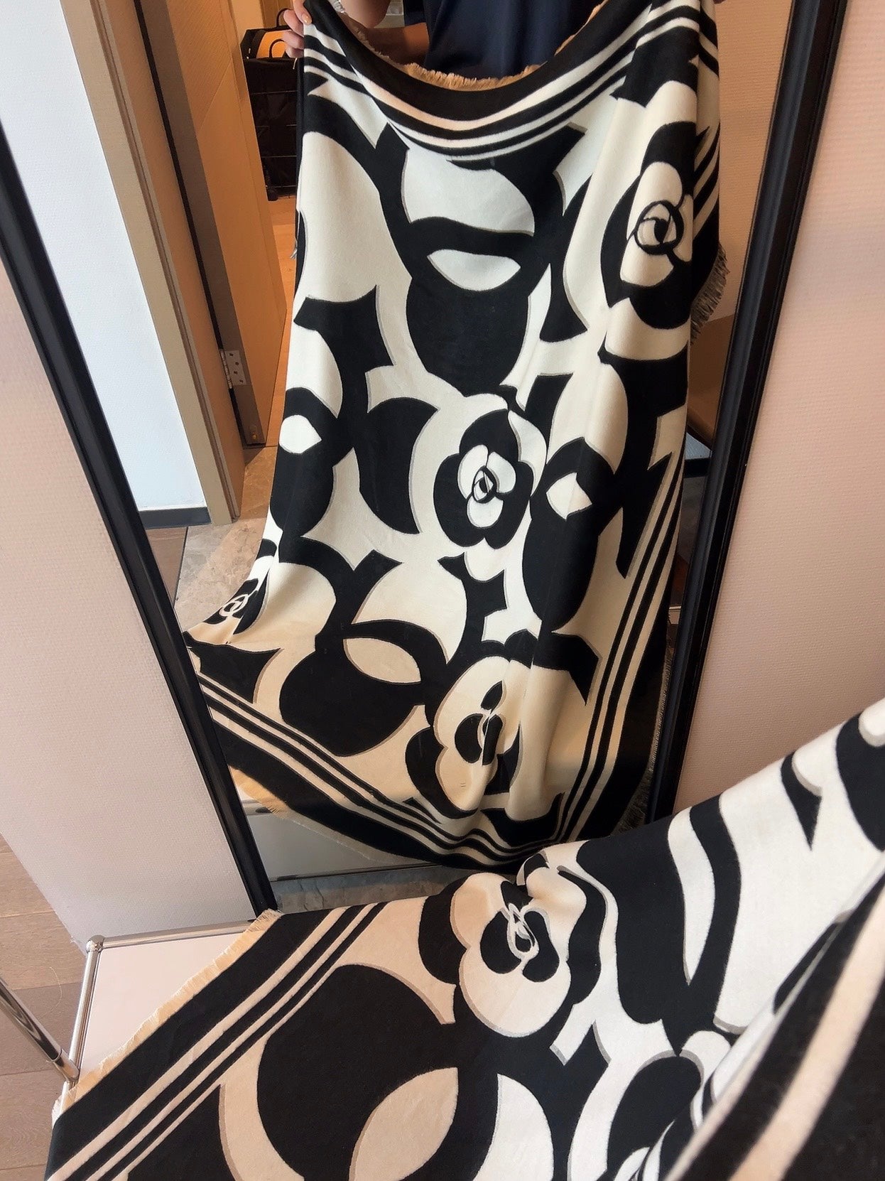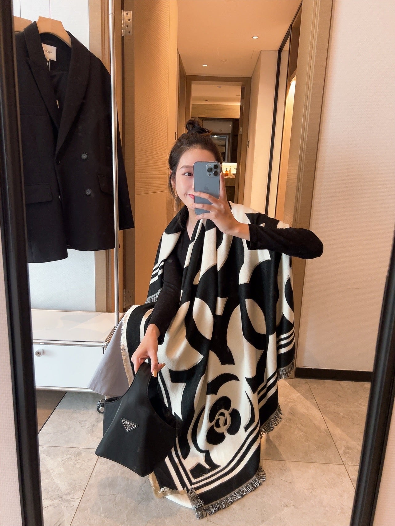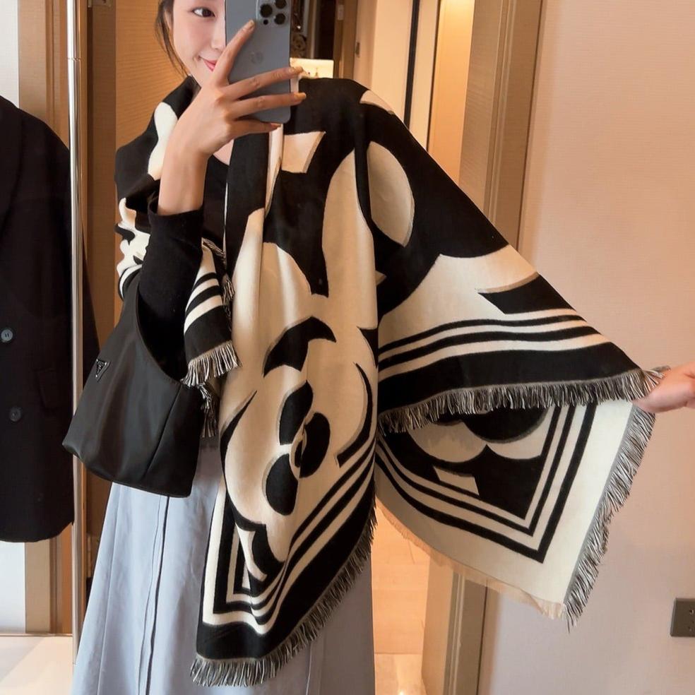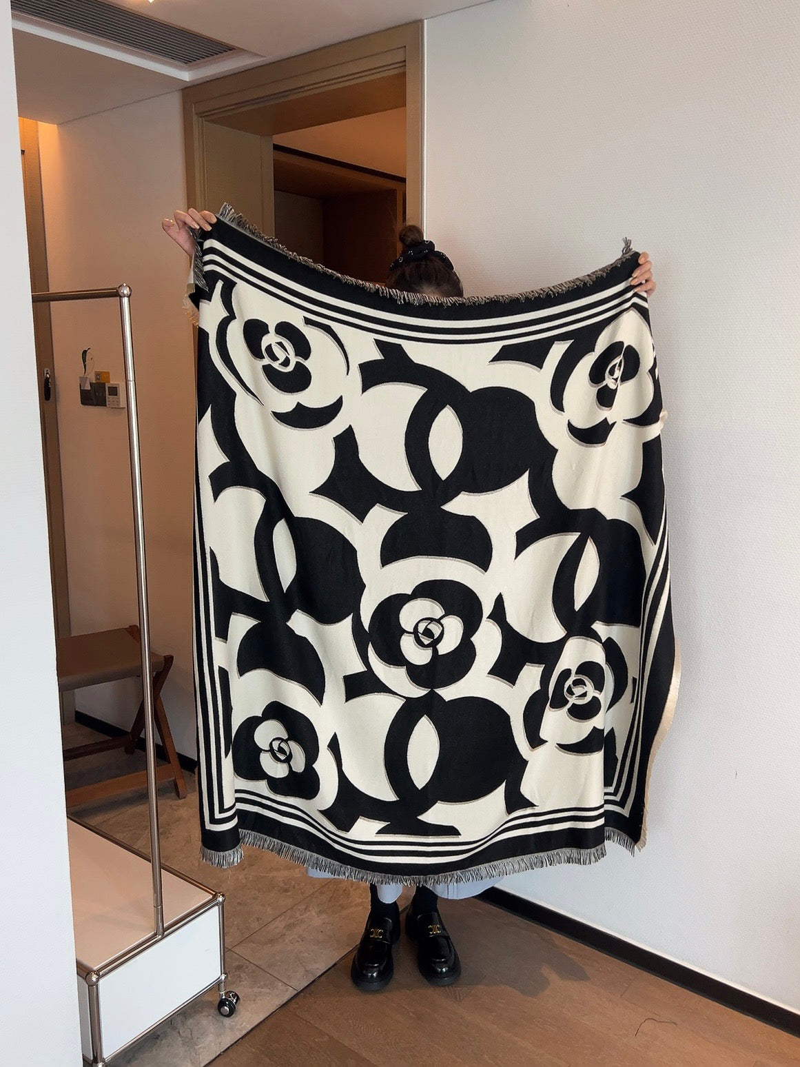 CC Square Scarf 140 CM In Black Mix White Cashmere 319061