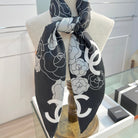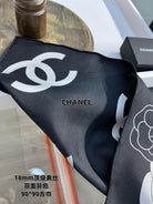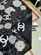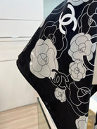 CC Square Scarf 90 CM In Black And White Camellia Logo Print Silk Twill 288740
