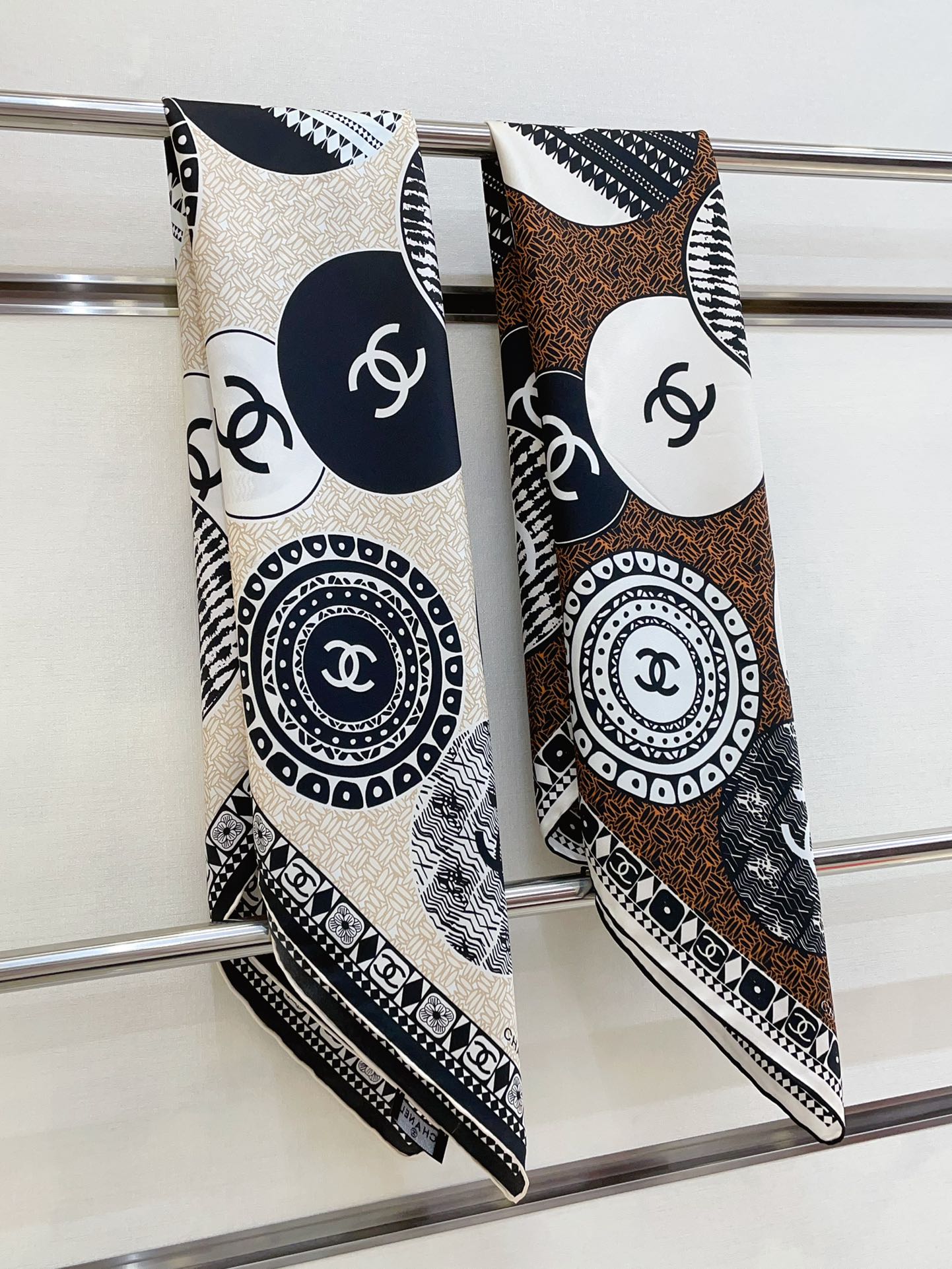 CC Square Scarf 90 CM In Brown Multi-Pattern Silk Twill 231846