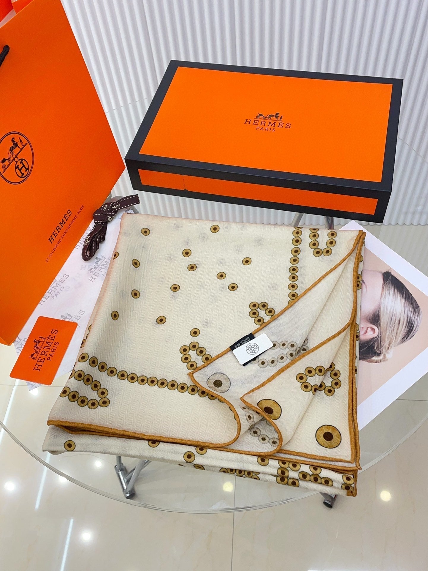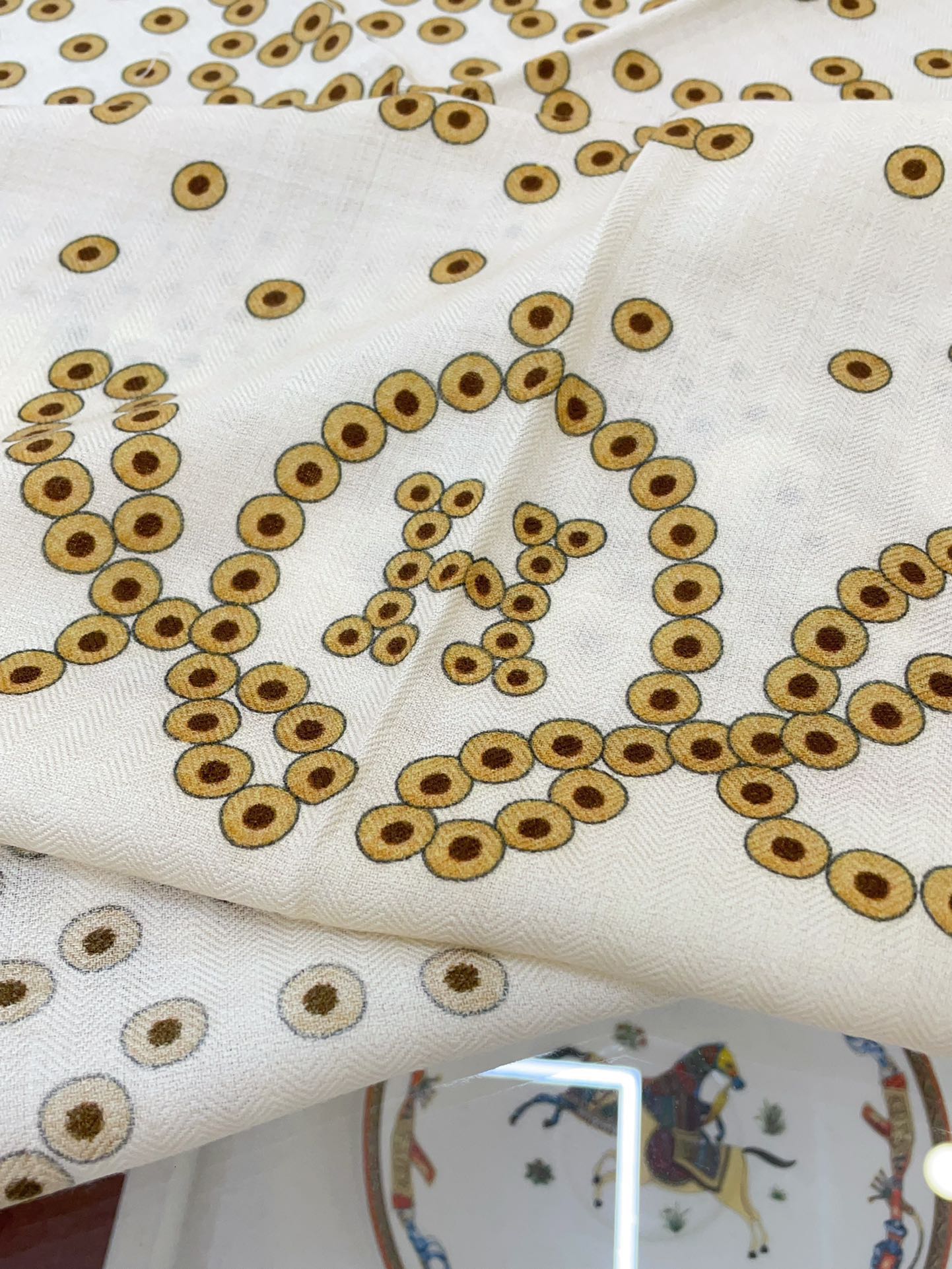 Cheval De Legende Scarf 140 CM Ivory White Pattern Cashmere And Silk