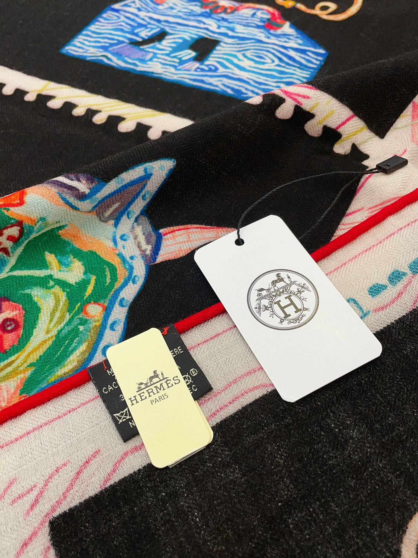 Chevaloscope Scarf 140 CM In Black Colorful Cashmere And Silk 373661