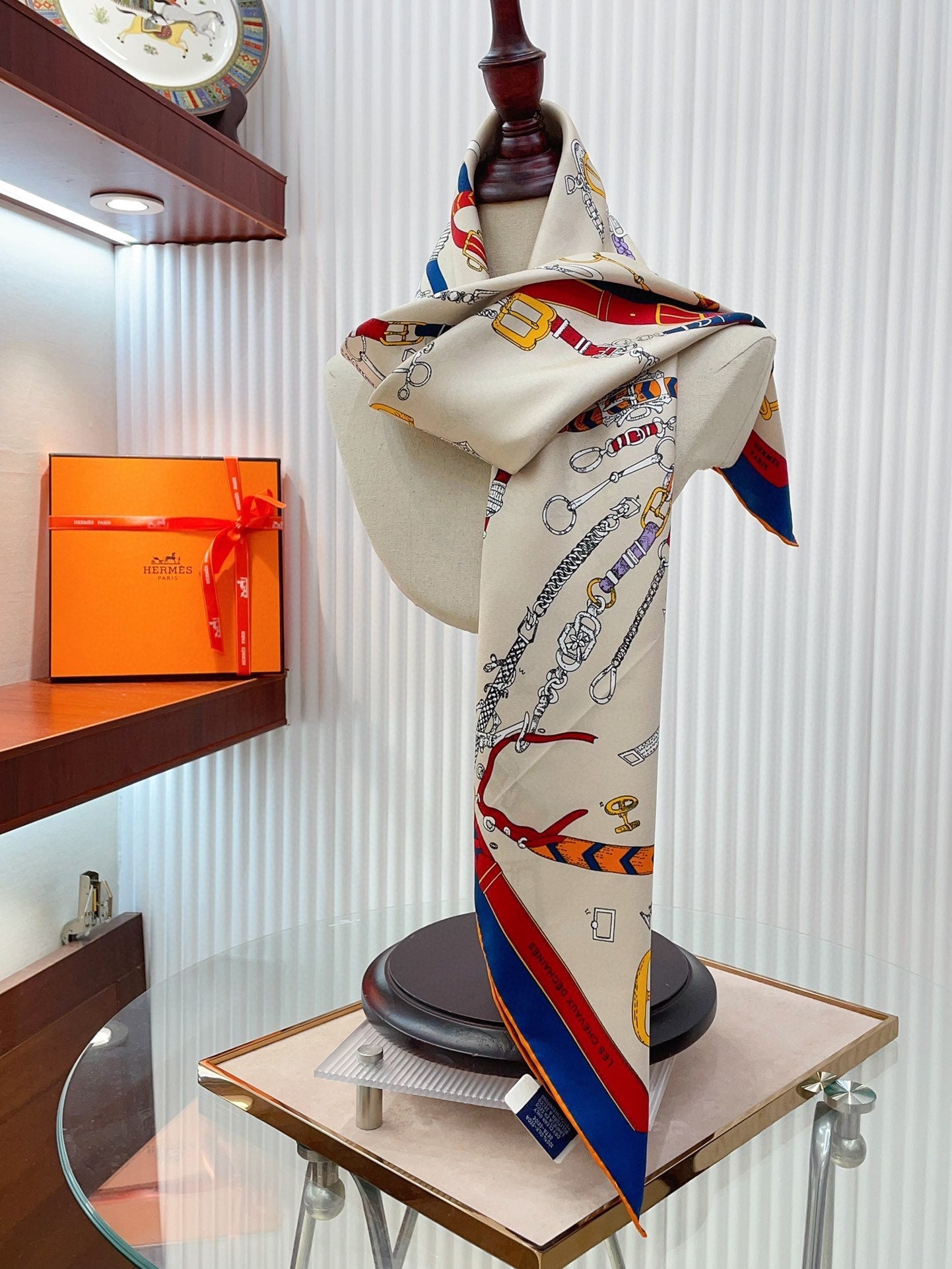 Chevaux Dechaines Shawl 90 CM In White Red Colorful Silk Twill 201031