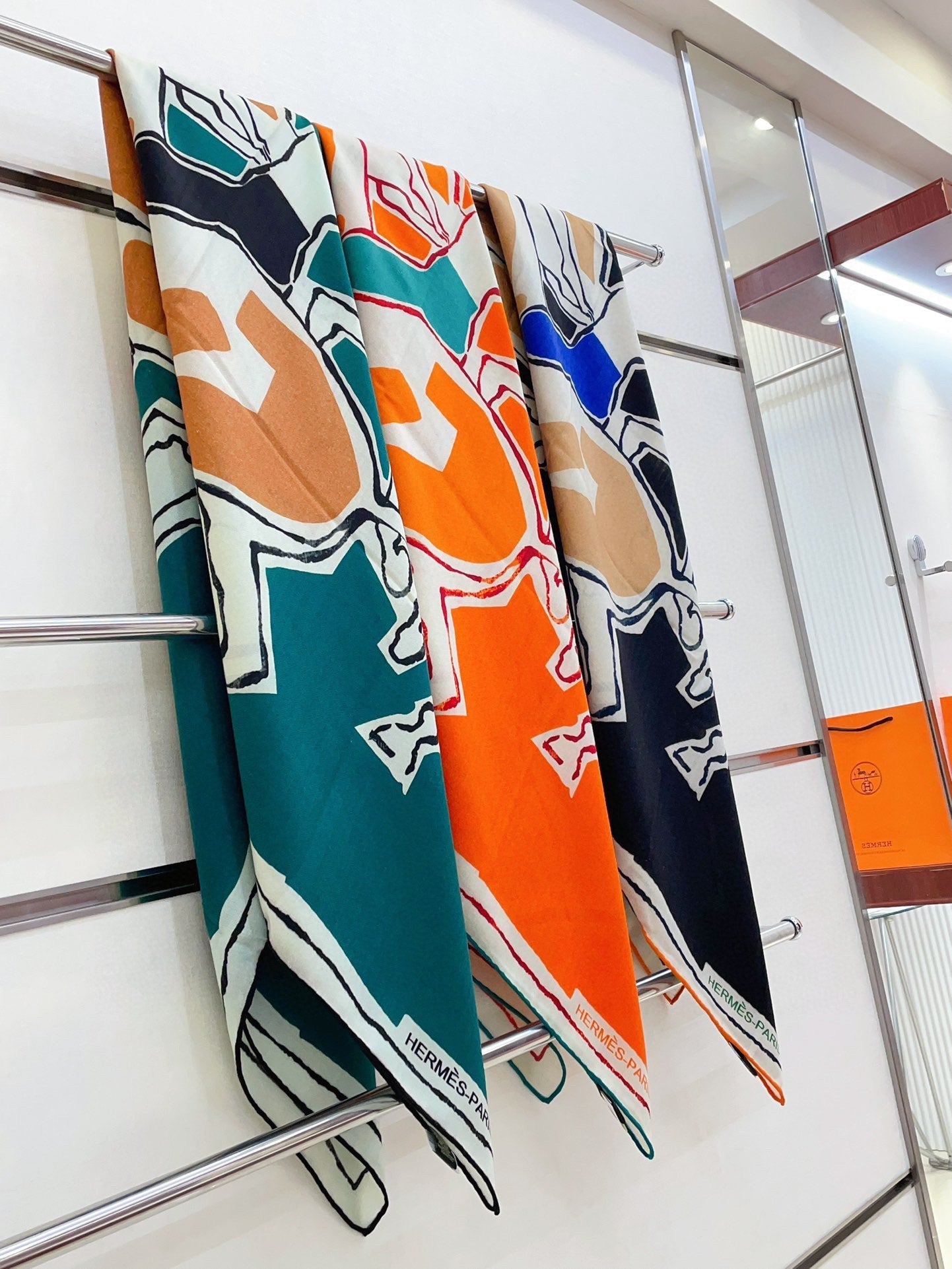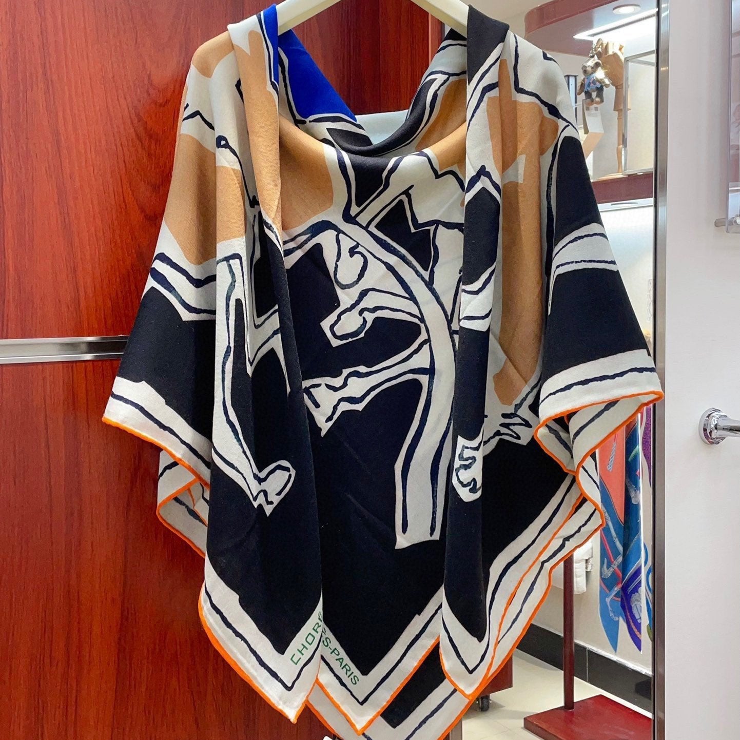 Choregraphie Equestre Scarf 140 CM Black Colorful Cashmere And Silk 393169