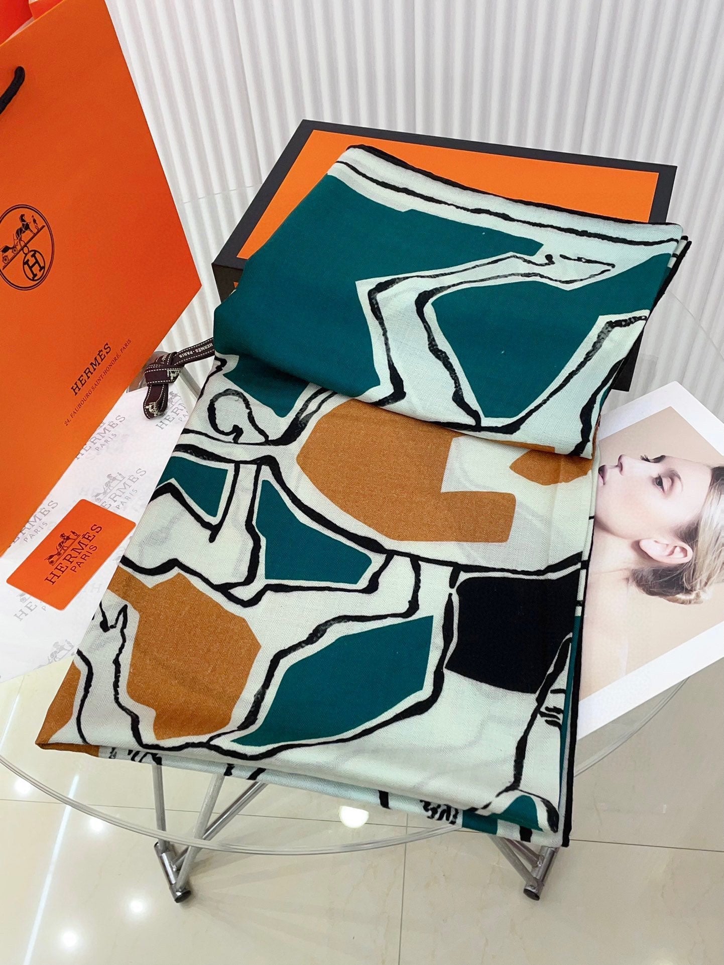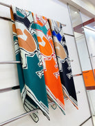 Choregraphie Equestre Scarf 140 CM Teal Blue Colorful Cashmere And Silk 393171