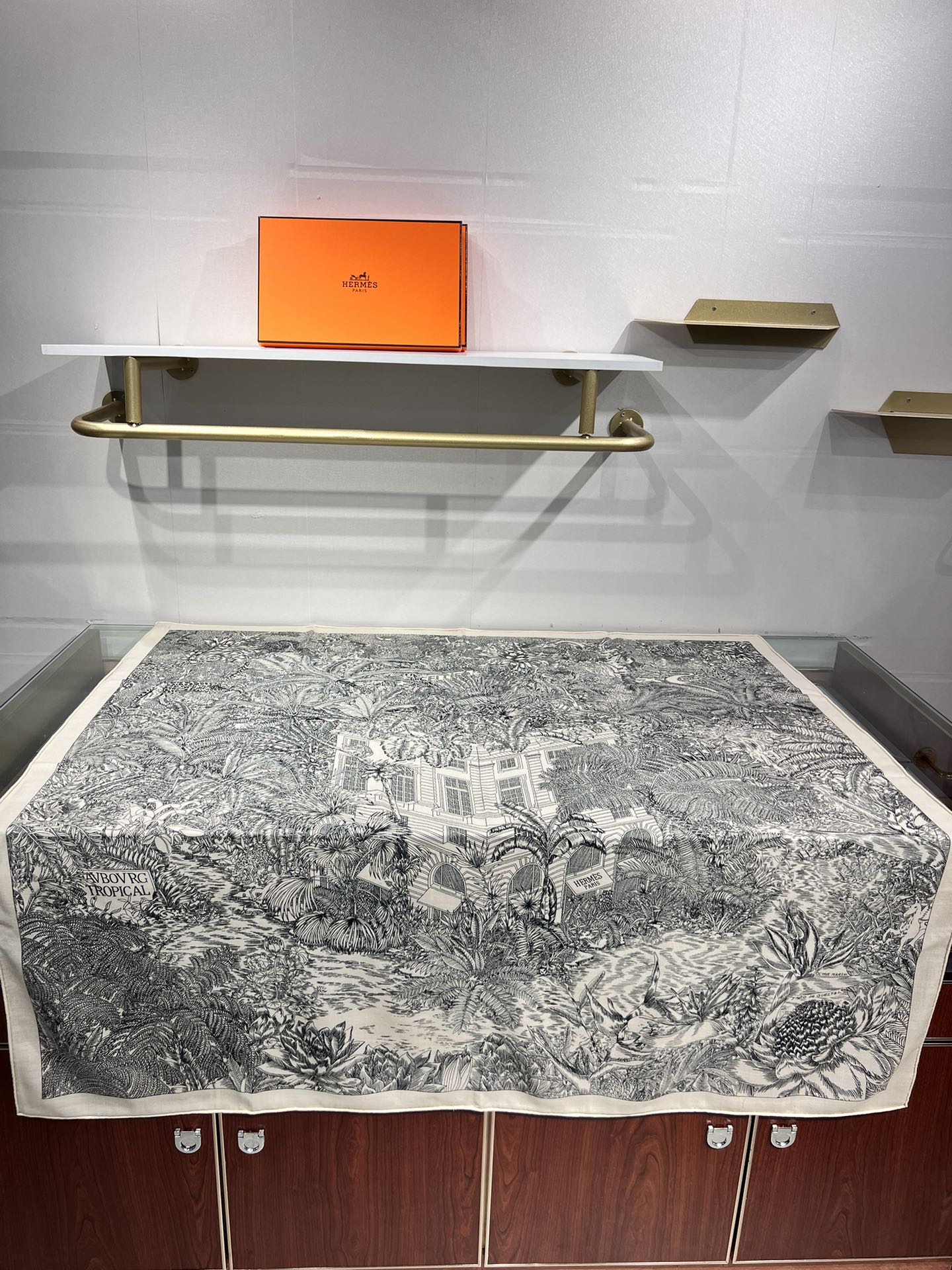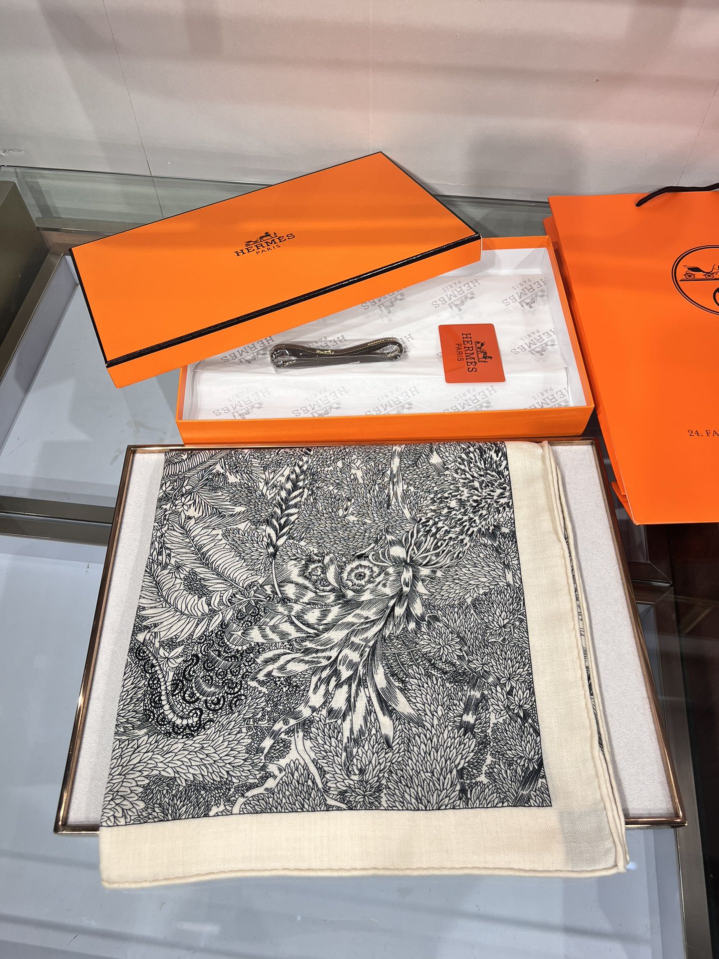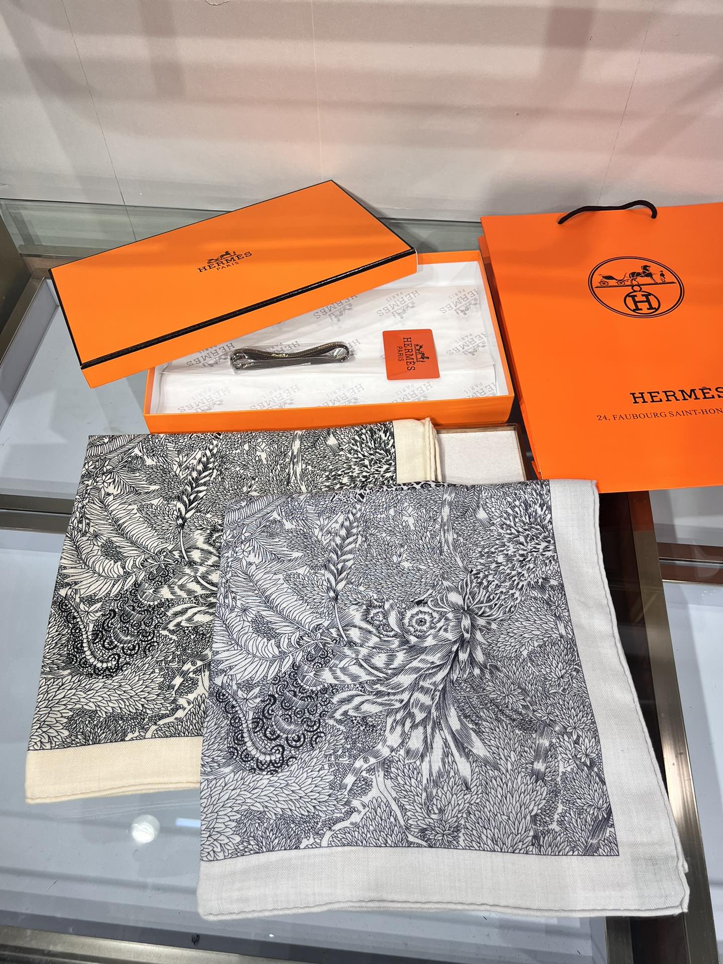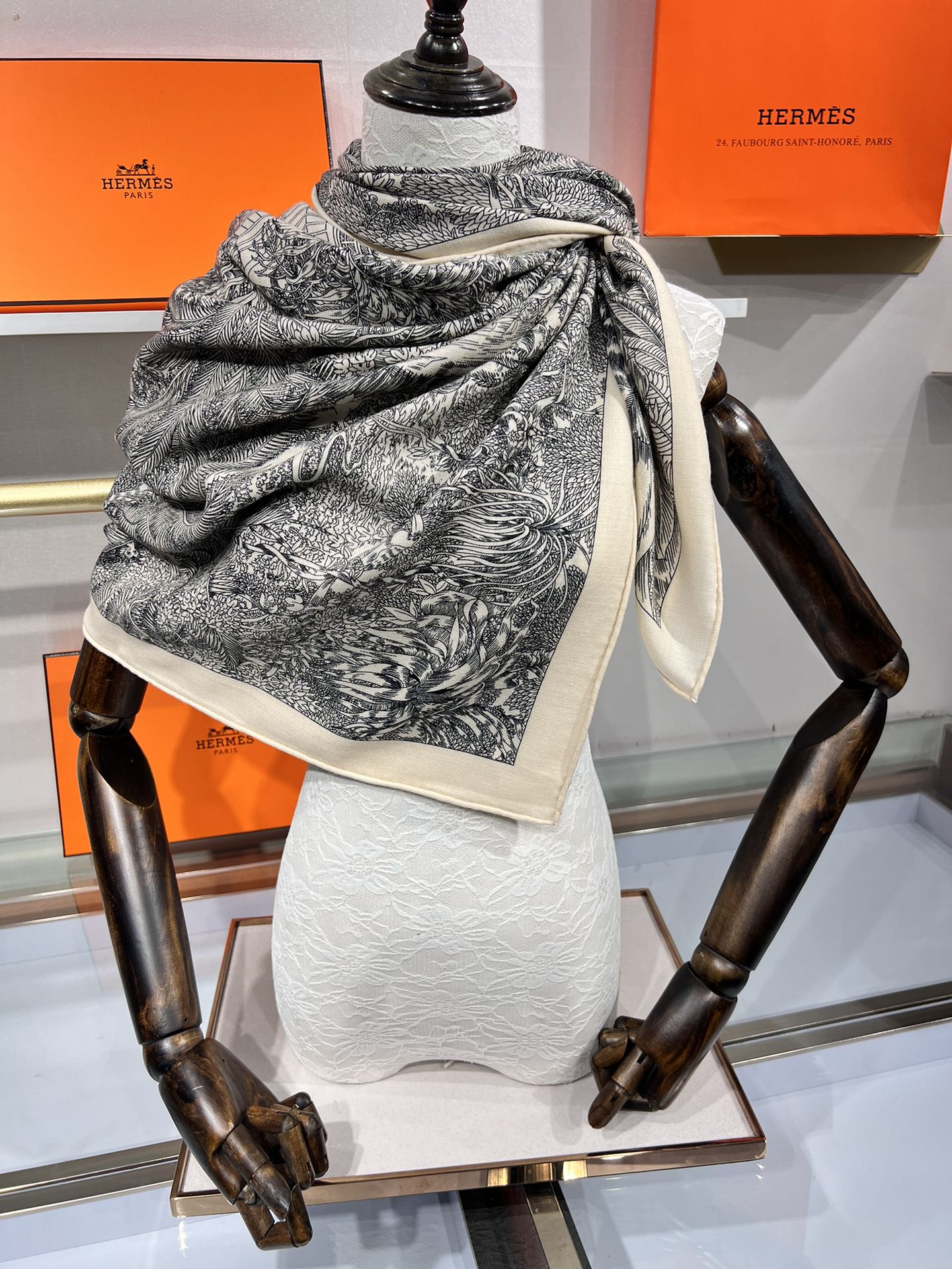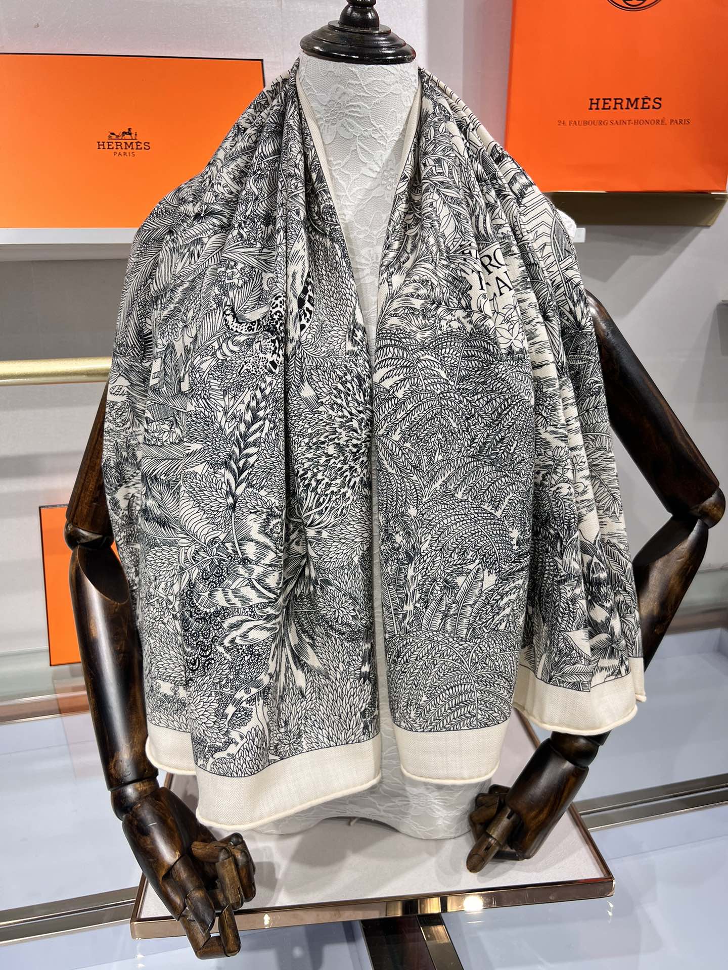 Faubourg Tropical Scarf 135 CM Black White Cashmere And Silk