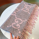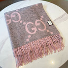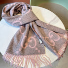 GG JACQUARD PATTERN KNIT SCARF 195 CM WITH TASSELS HARBOR GRAY MIX LIGHT PINK 403748