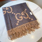 GG JACQUARD PATTERN KNIT SCARF 195 CM WITH TASSELS PIGEON BLUE 403745