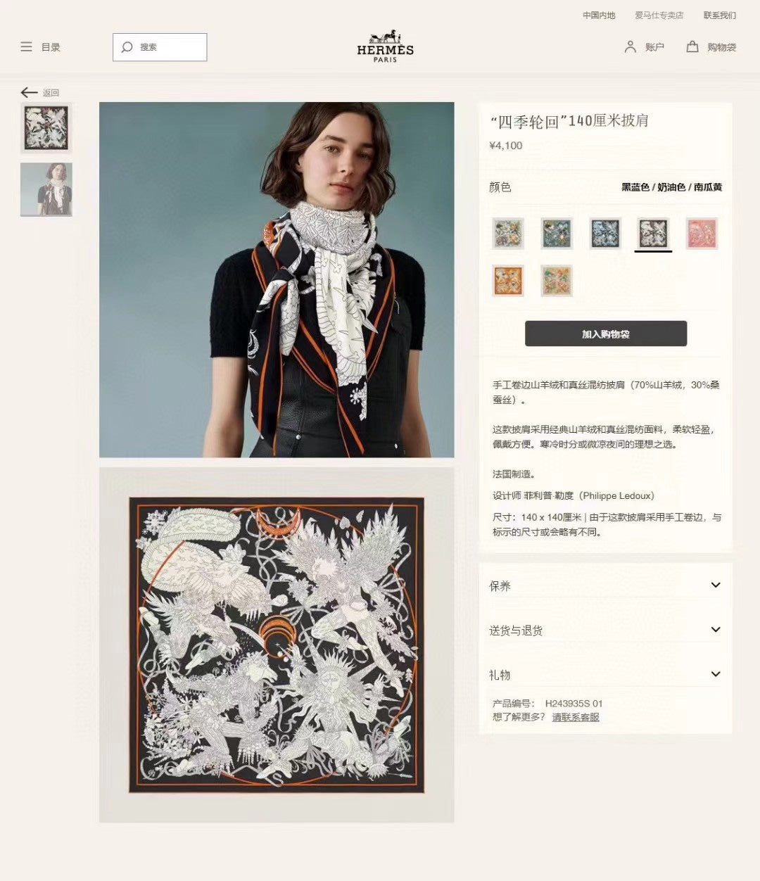 Material: 70% Cashmere, 30% Silk