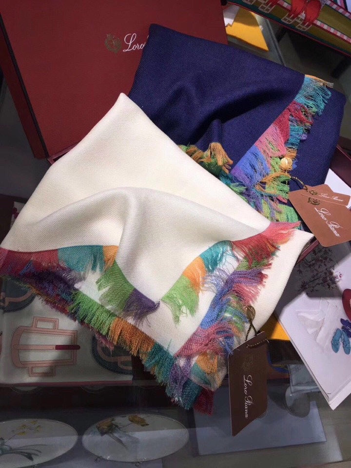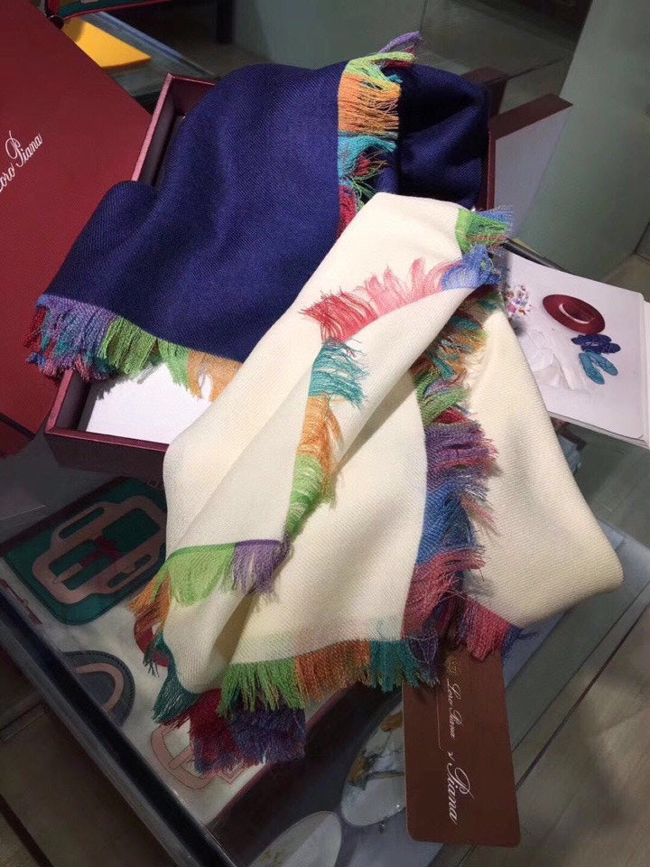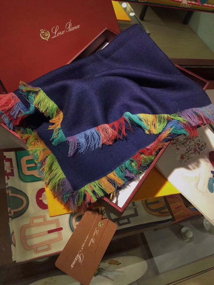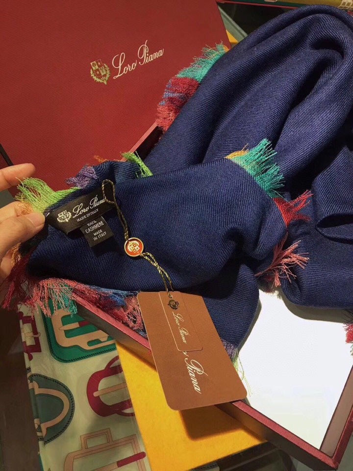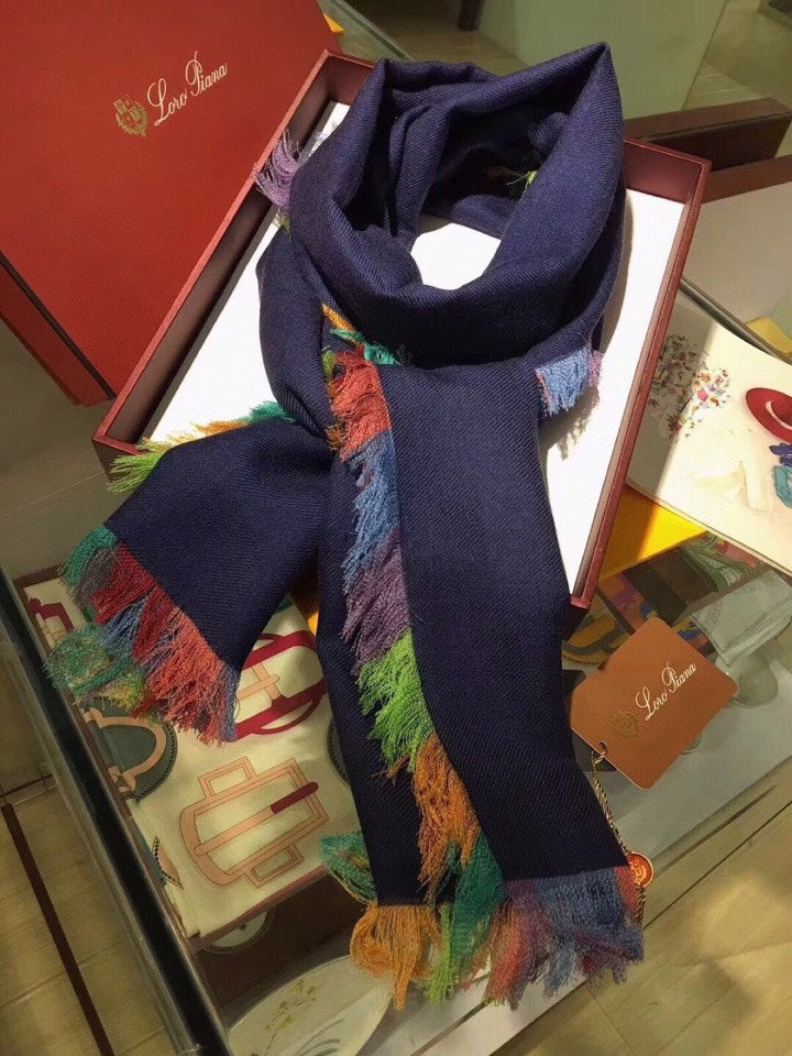 LP Scarf 190 CM In Charcoal Blue Colorful Cashmere 656977