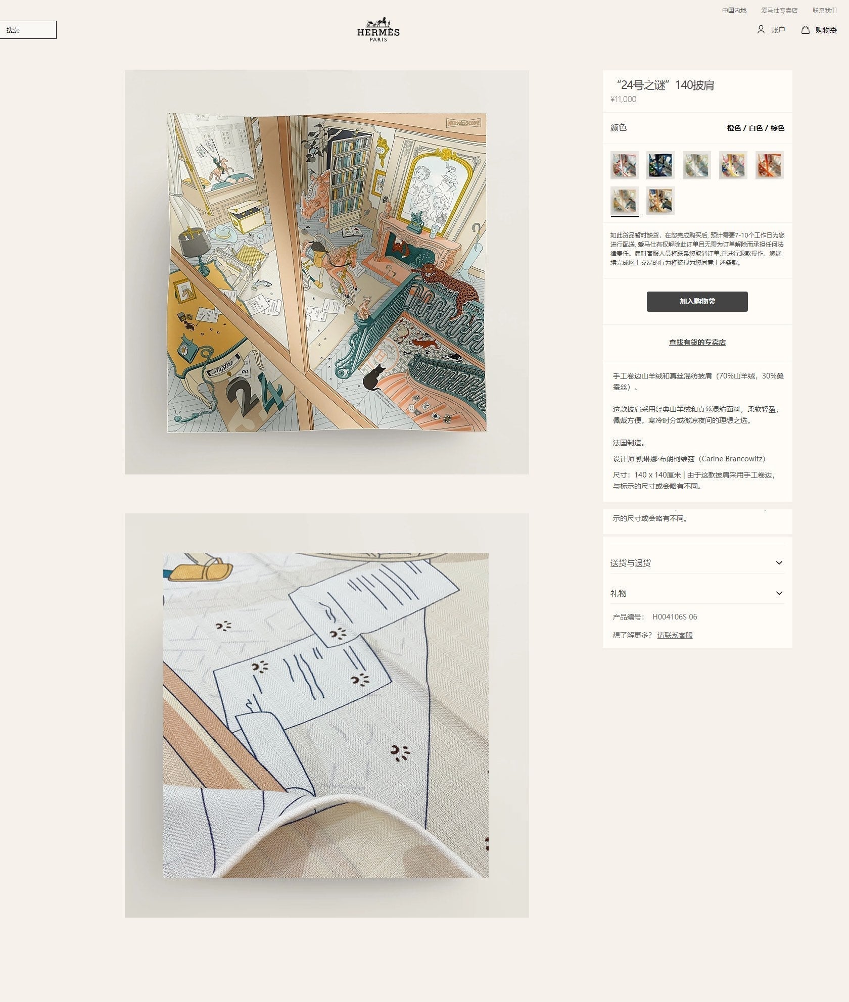 Material: 70% Cashmere, 30% Silk