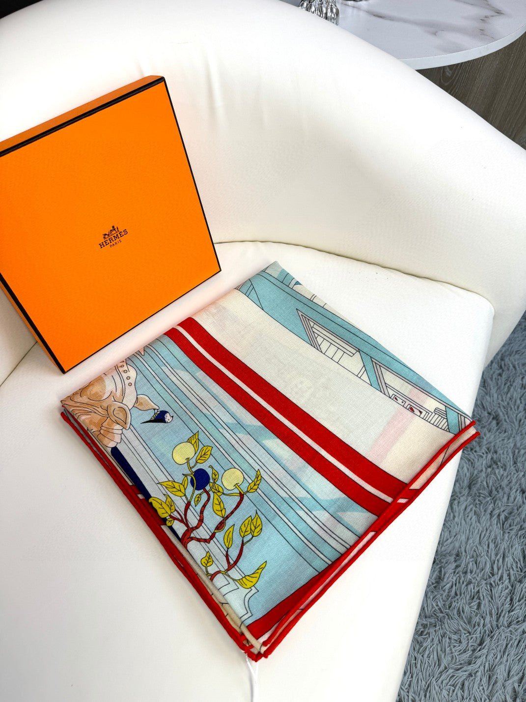 Mystere Au 24 Scarf 135 CM Light Jade Blue Colorful Cashmere And Silk