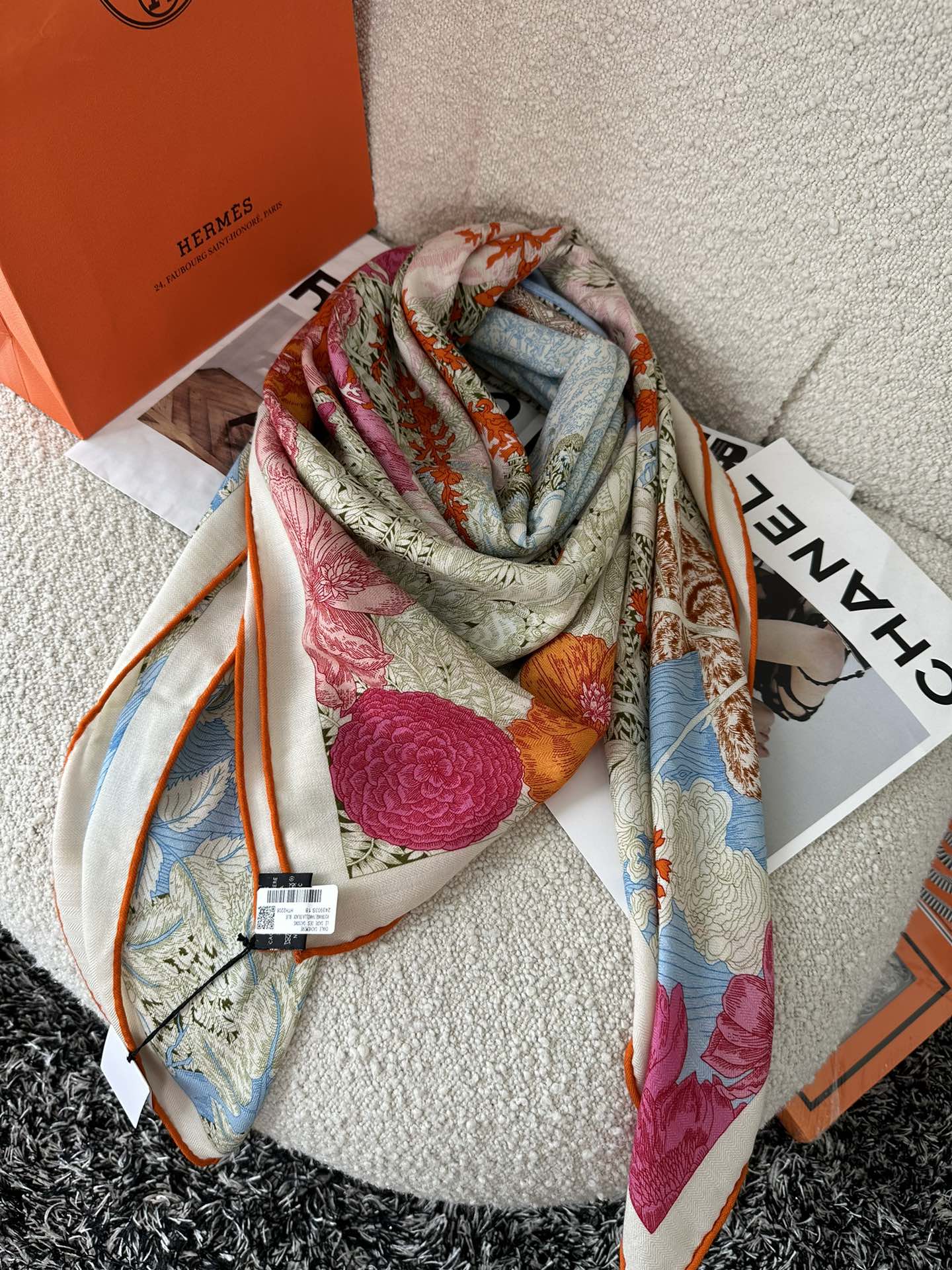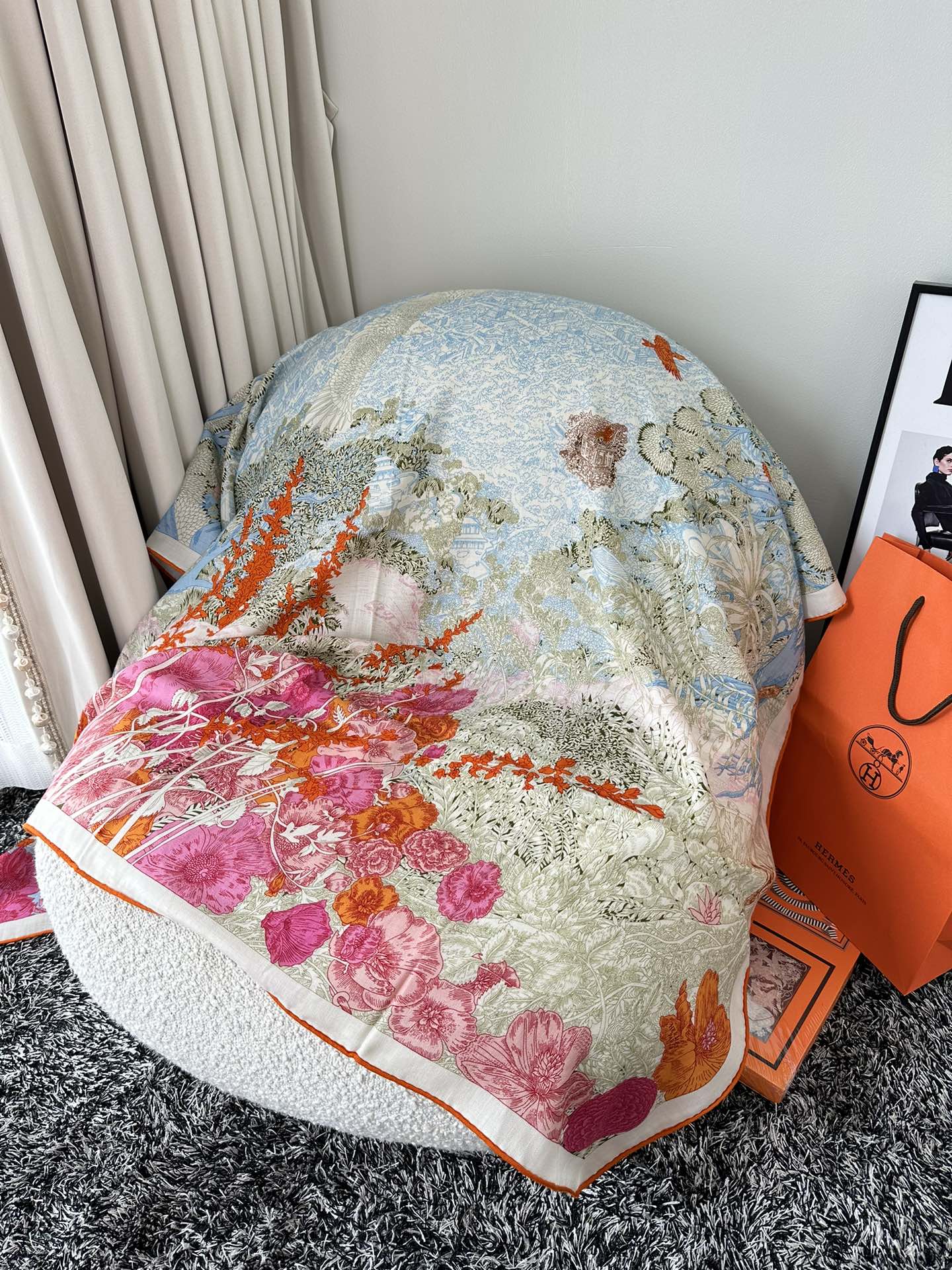Retour A La Nature Shawl 140 CM Green Gray Colorful Silk