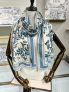 SCARF 180 CM IN WHITE MIX LIGHT BLUE CASHMERE AND SILK 408420