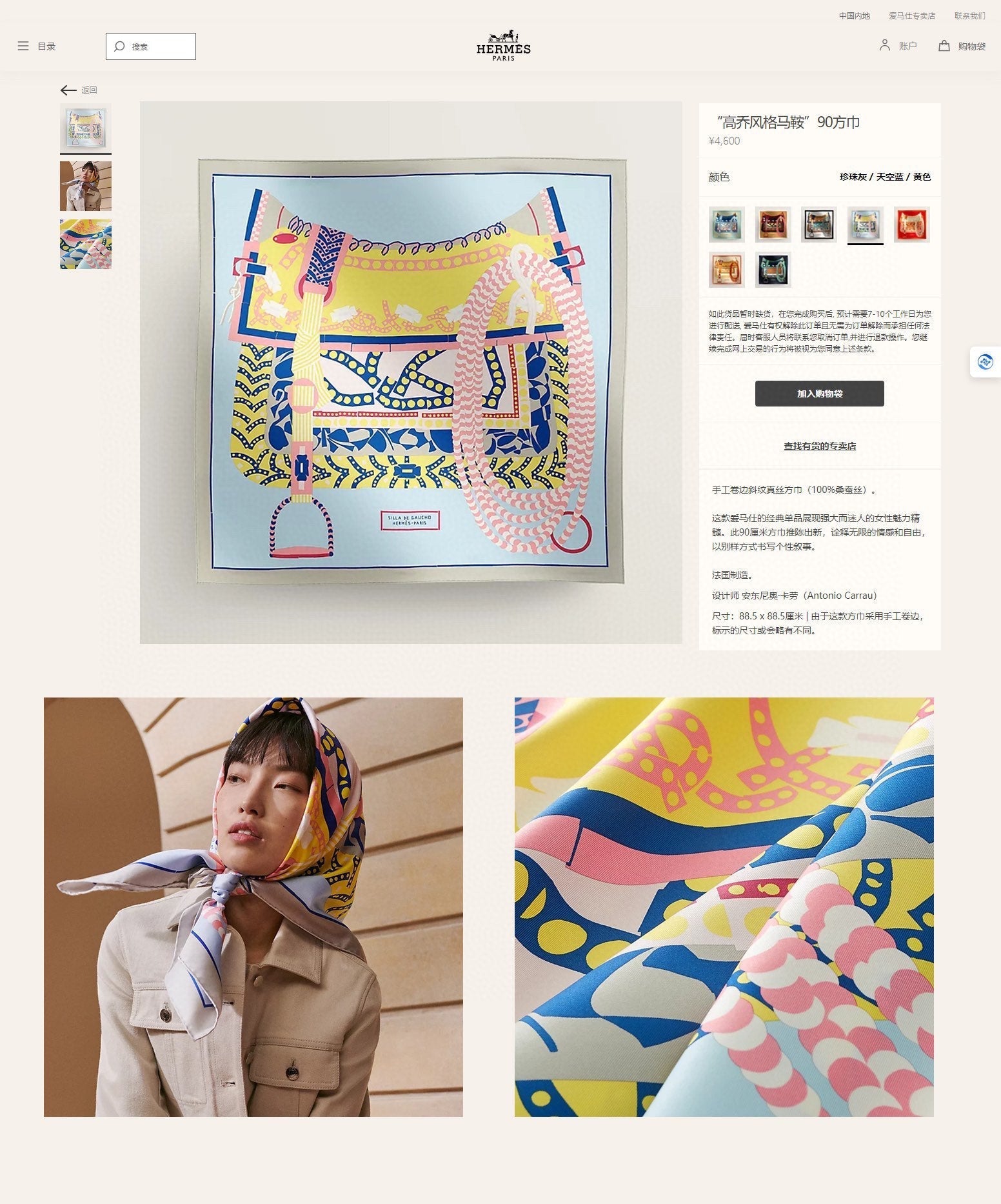 Silla De Gaucho Scarf 90 CM In Light Blue Colorful Silk Twill 231854