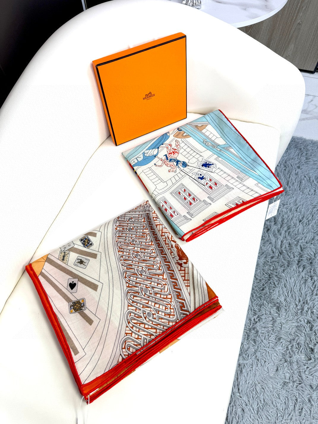 Square scarf 135 CM Light Jade Blue Colorful Cashmere And Silk