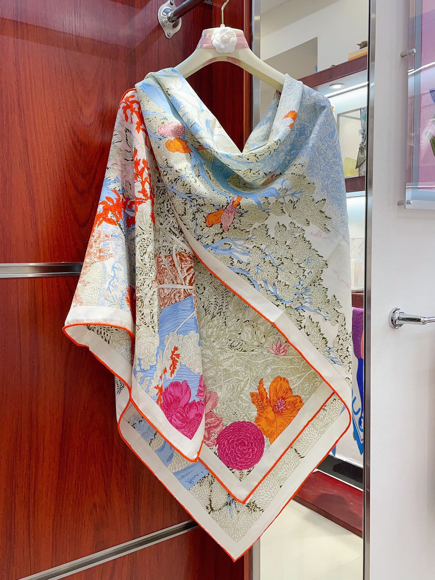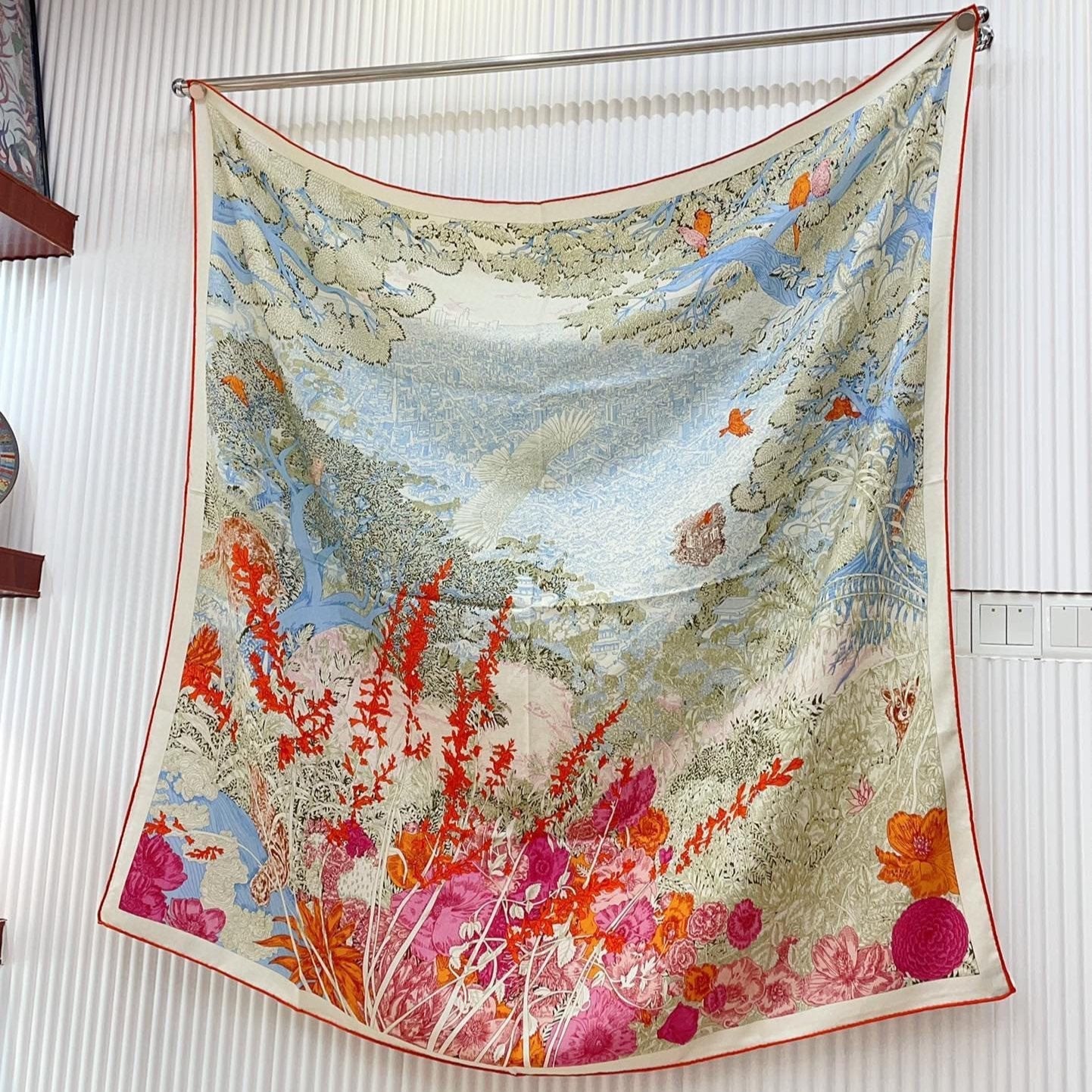 Square Scarf 140CM In Light Blue Colorful Cashmere And Silk