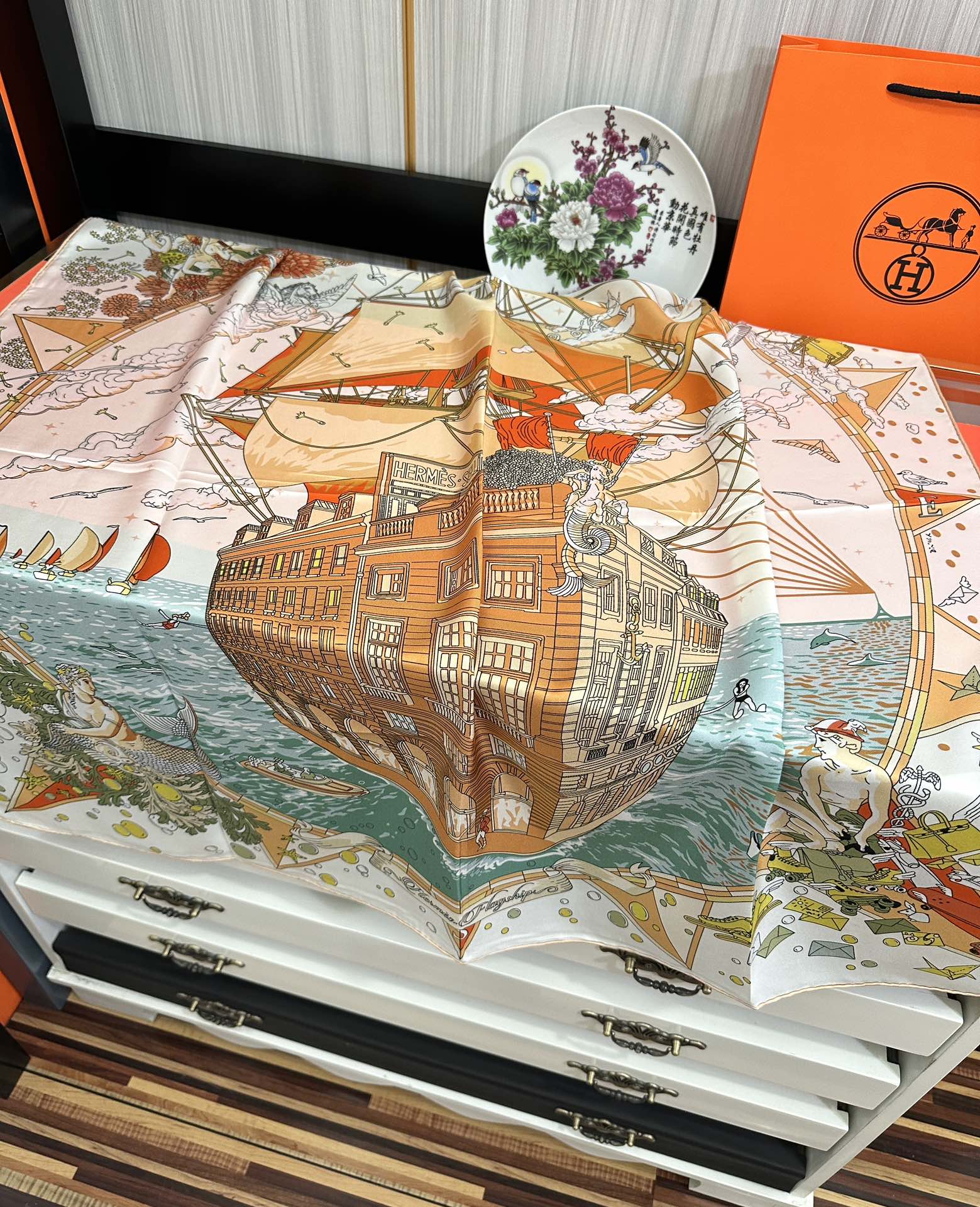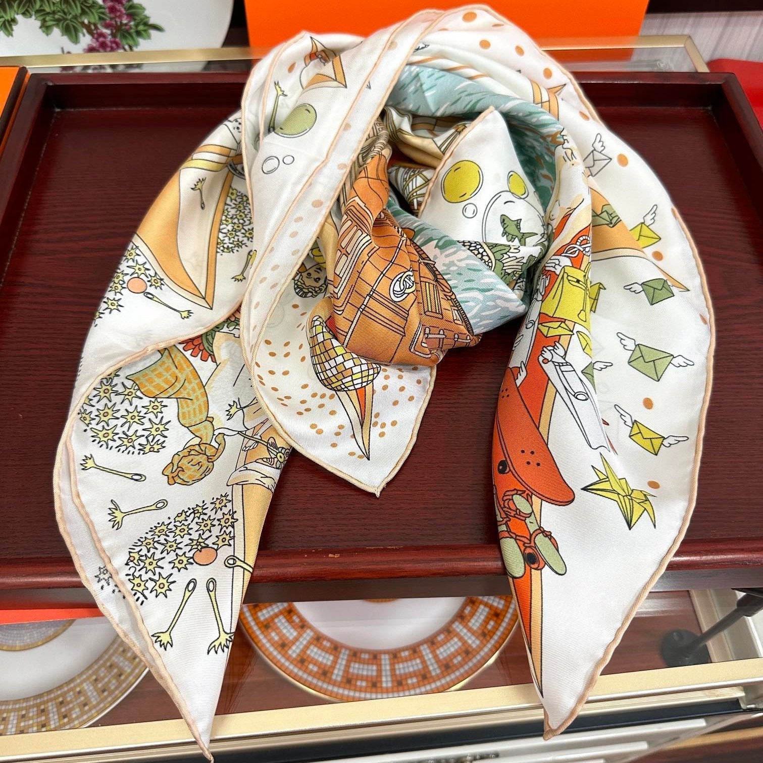 Square Scarf 90 CM White Colorful Silk