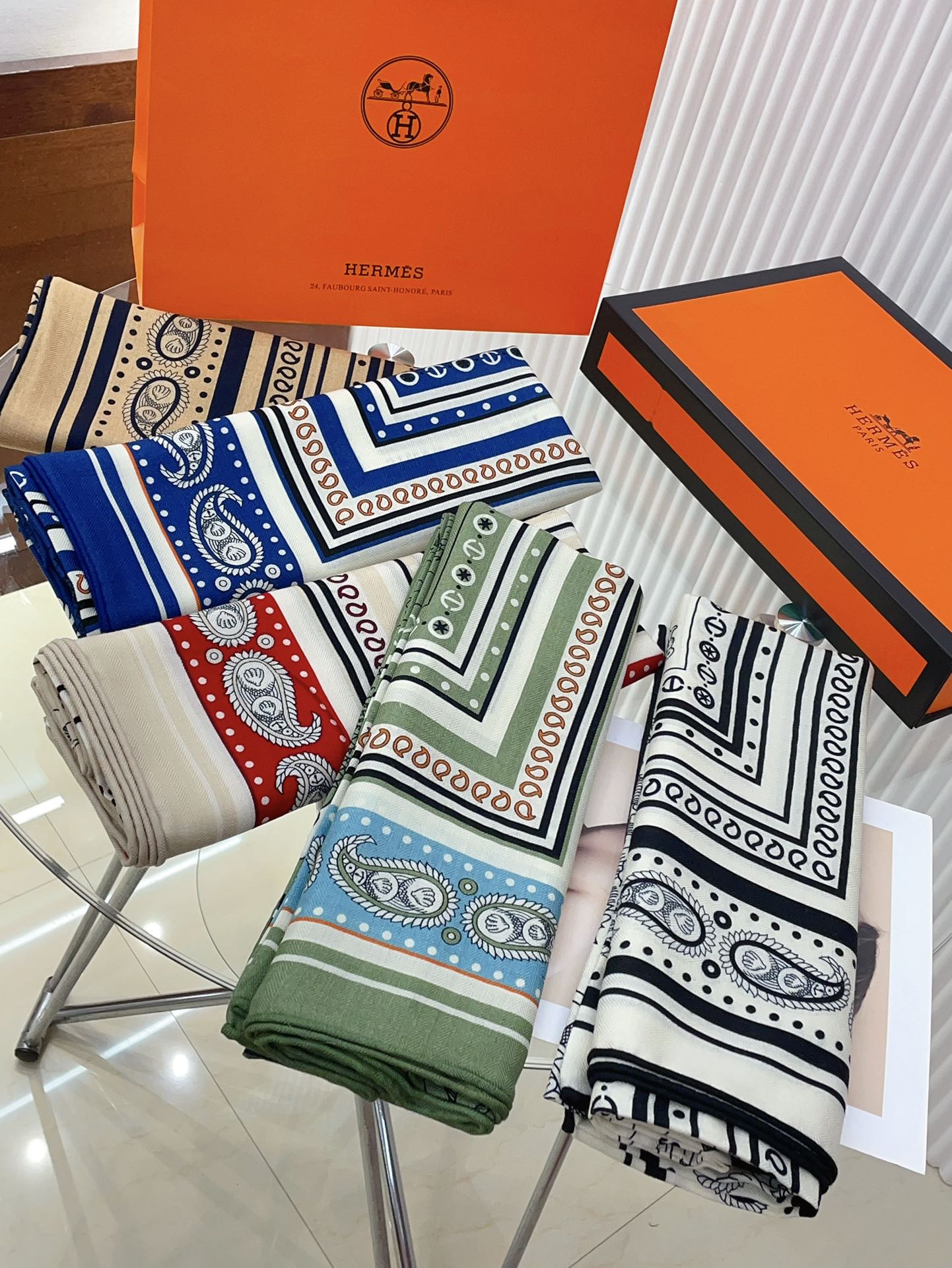 Tatouages Marins Bandana Shawl 135 CM In Green Colorful Cashmere And Silk 252311