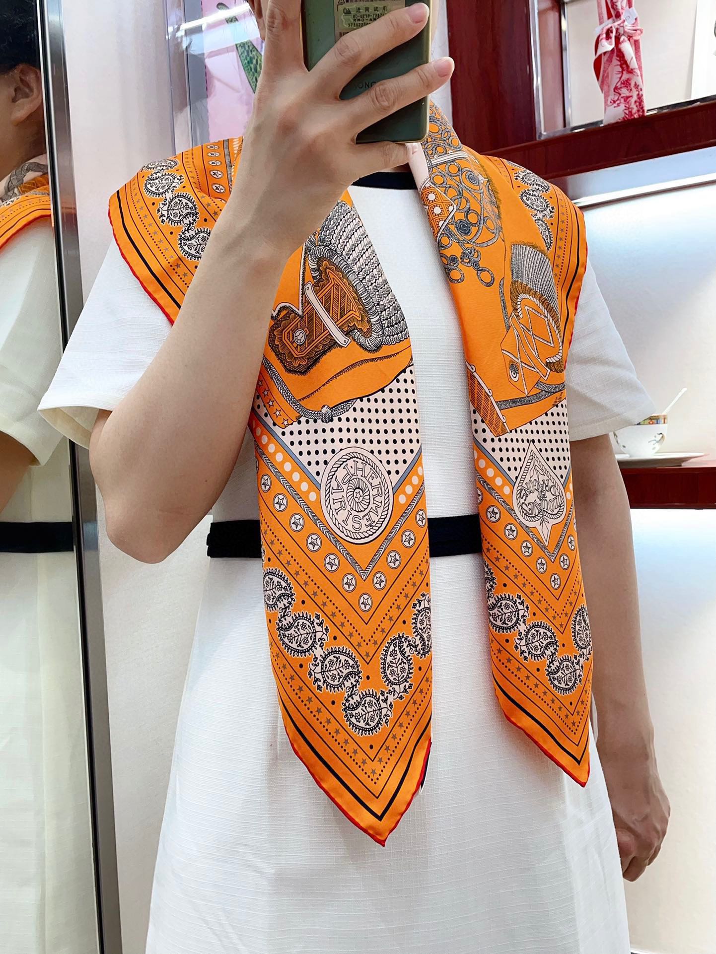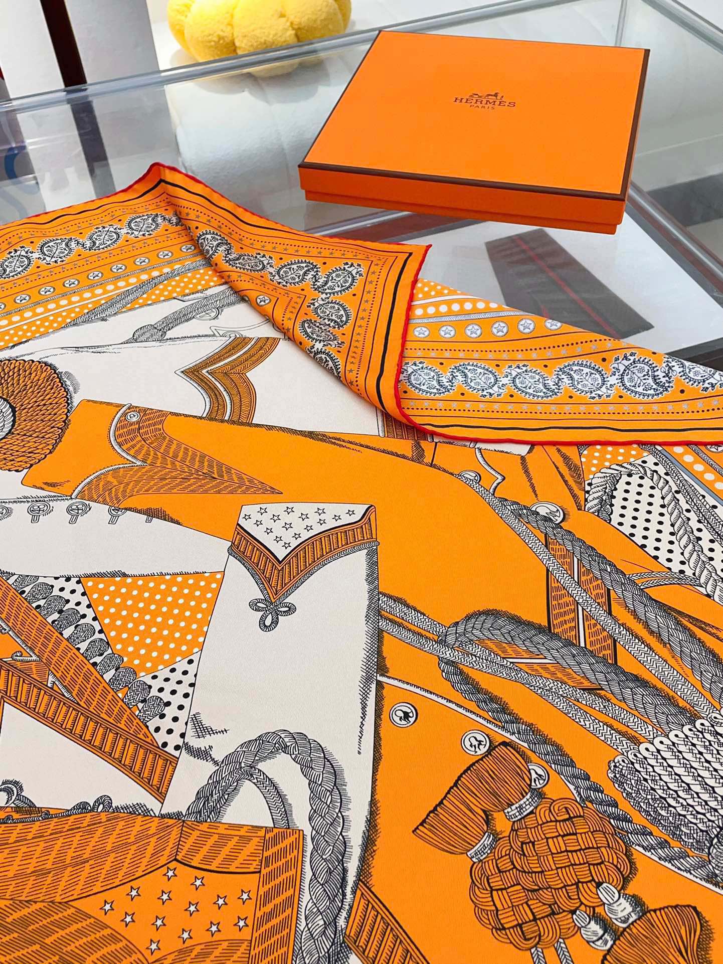 Zouaves Et Dragons Bandana Shawl 90 CM In Orange Colorful Silk Twill 262788