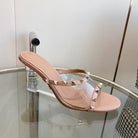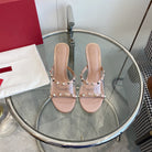 80mm Rockstud Patent Rose Cannelle Leather Mules Transparent