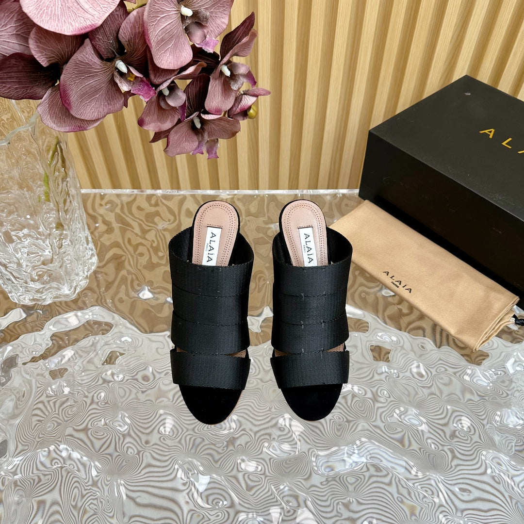 ALAIA ELASTIC CAGE MULE SANDALS IN BLACK WOVEN STRAP AND LAMBSKIN
