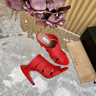 ALAIA ELASTIC CAGE MULE SANDALS IN CHERRY RED WOVEN STRAP AND LAMBSKIN