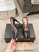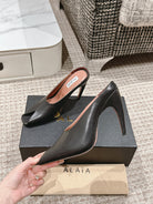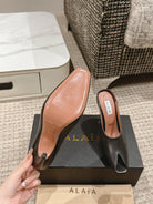 ALAIA SPIKE JEWEL MULES IN BLACK CALFSKIN