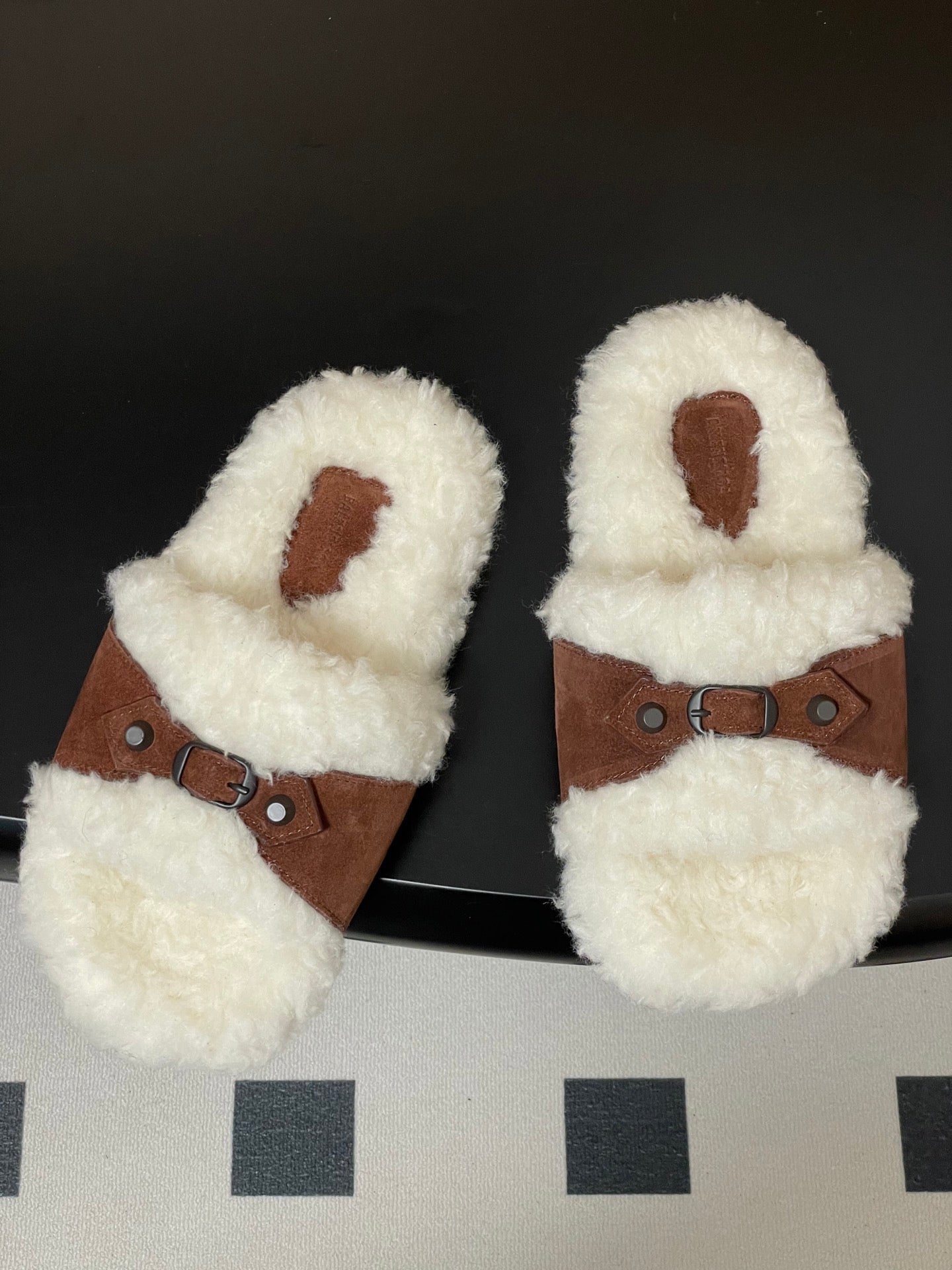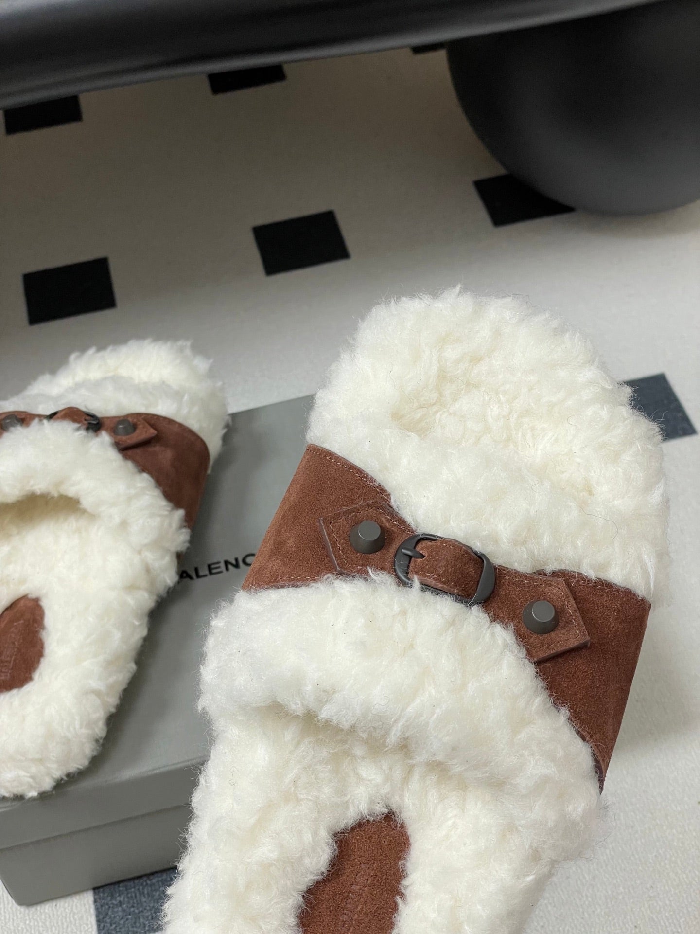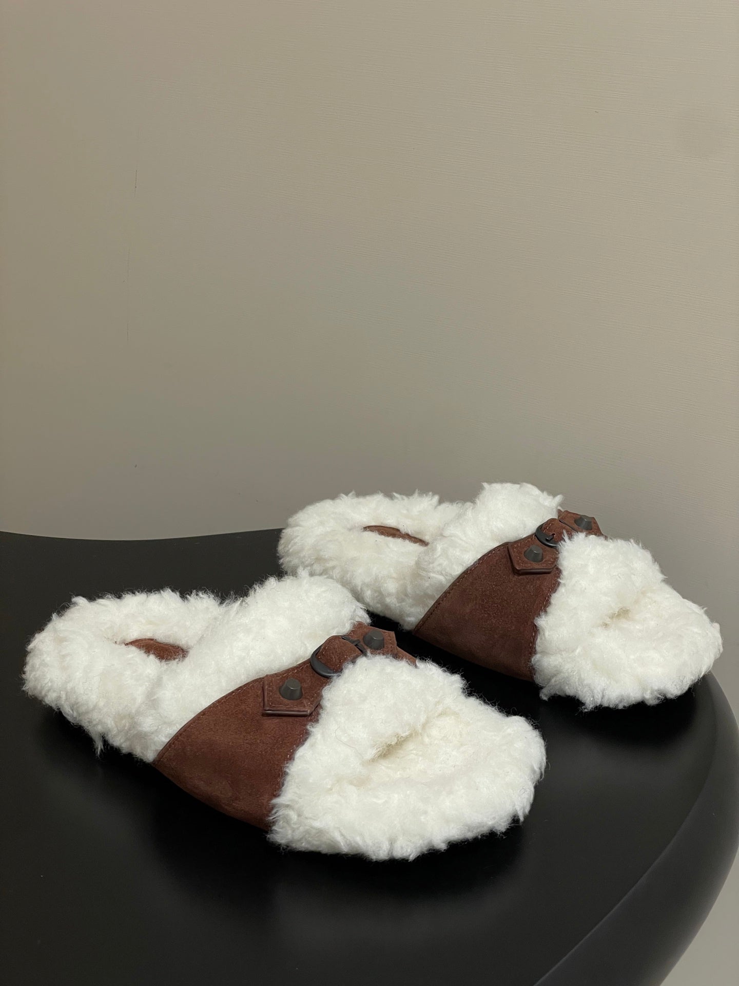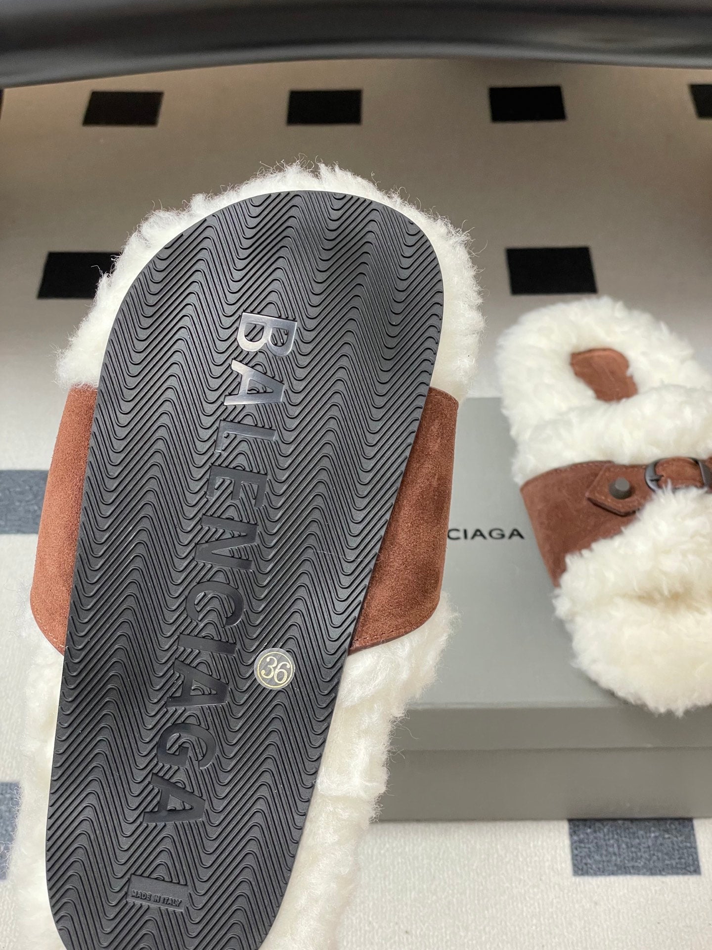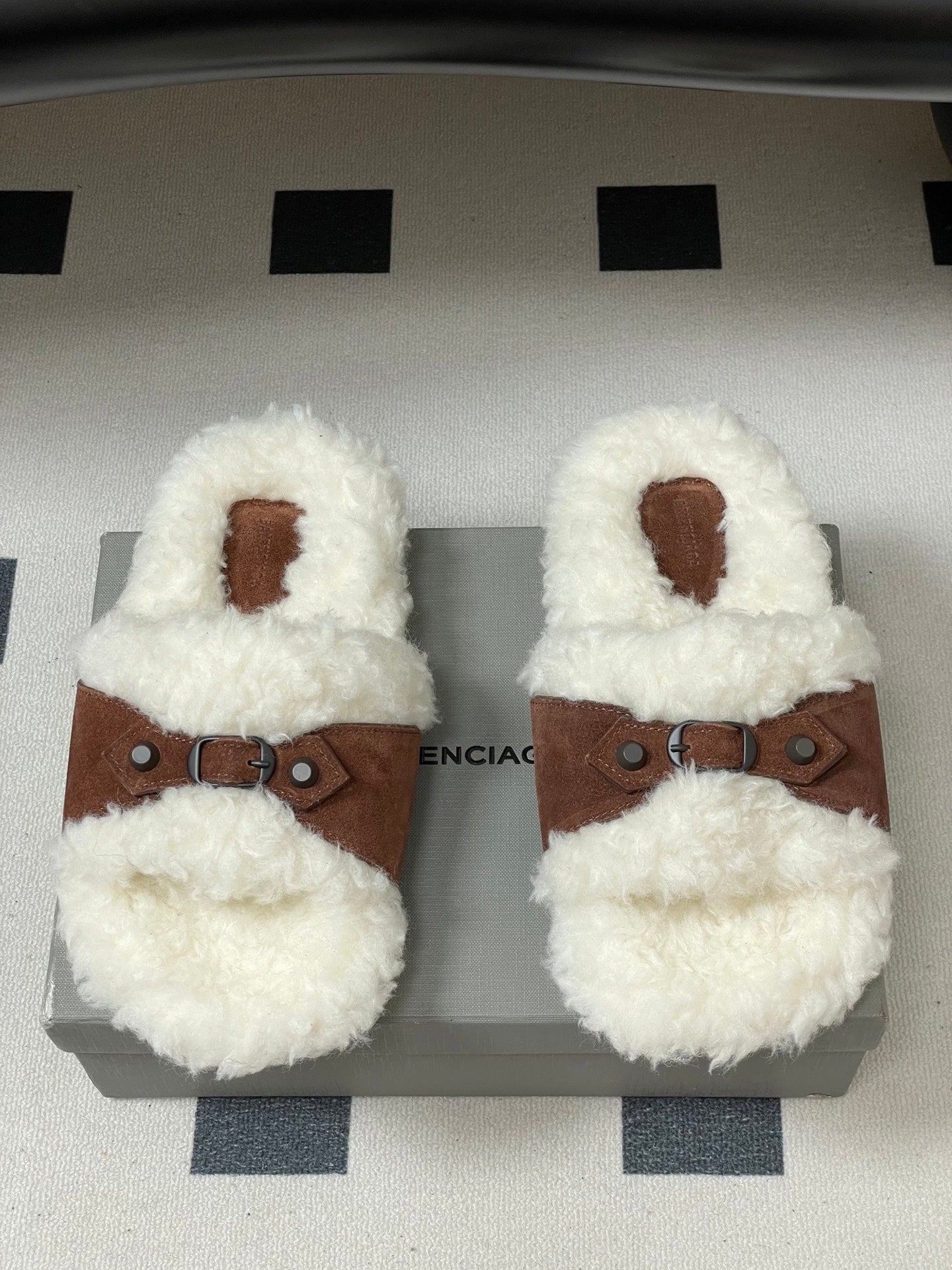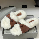 Balenciaga Classic Buckle Slippers White Red Brown Wool 535028