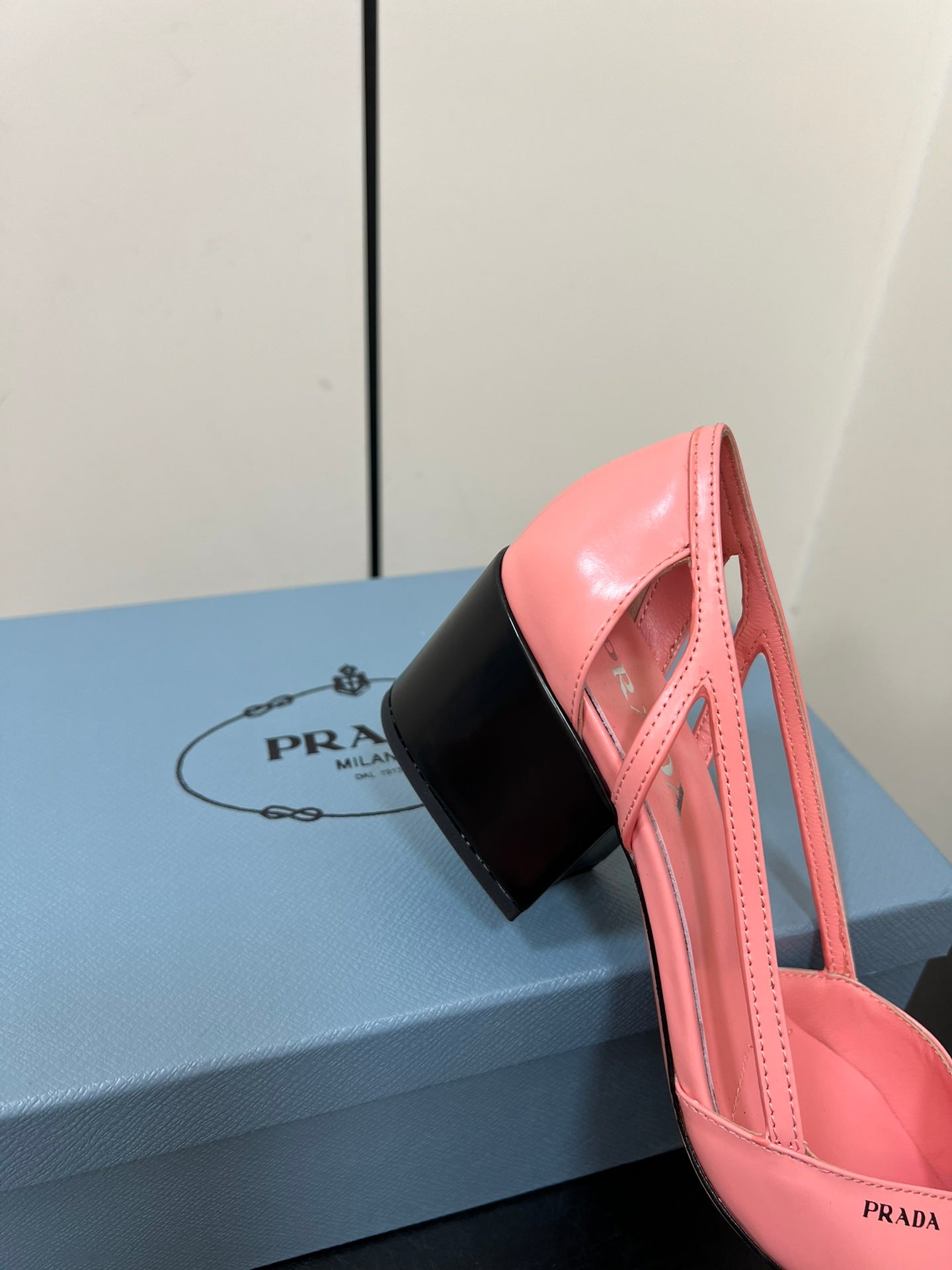 BRUSHED CUT-OUT PUMPS IN SALMON PINK CALFSKIN