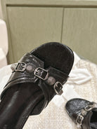 CAGOLE FLAT SANDALS IN BLACK WAX-OIL SHEEPSKIN