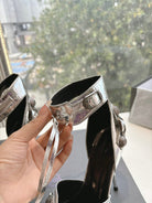 CAGOLE HIGH-HEEL SANDALS IN SILVER METALLIC LAMBSKIN
