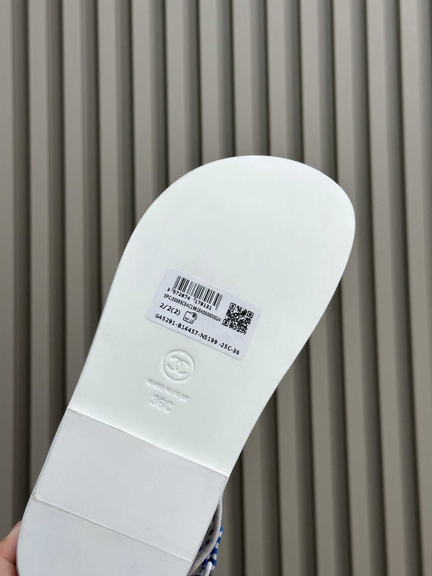 cc dad sandal striped ocean blue white fabric calfskin