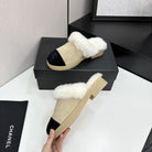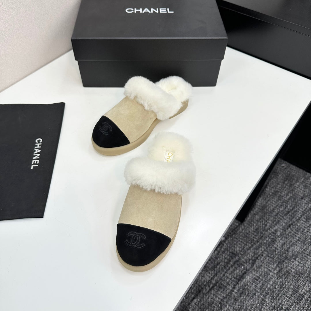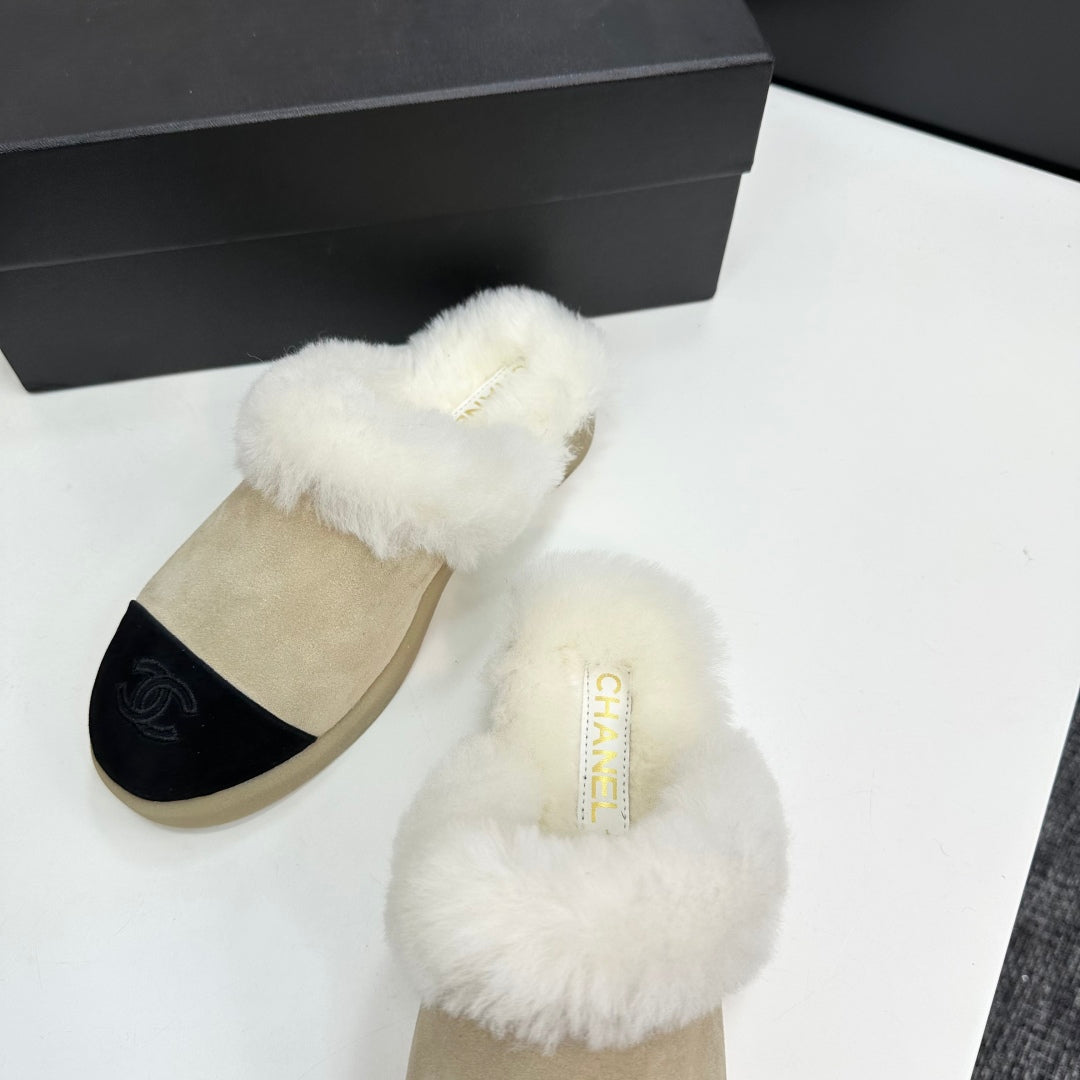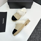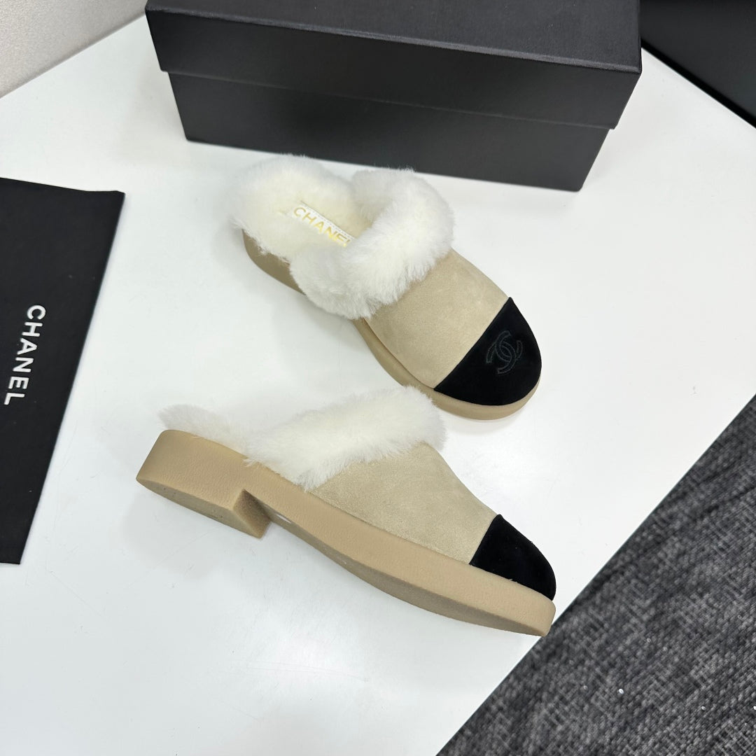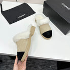 CC furry mule light beige black suede and wool 532577