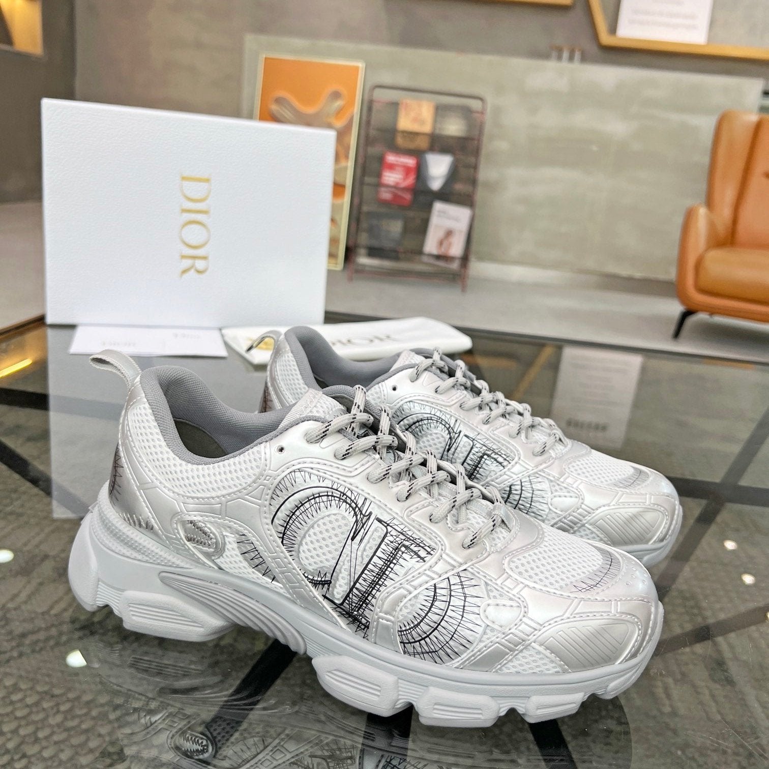 CD CHRONO SNEAKER WHITE AND SILVER MESH FABRIC