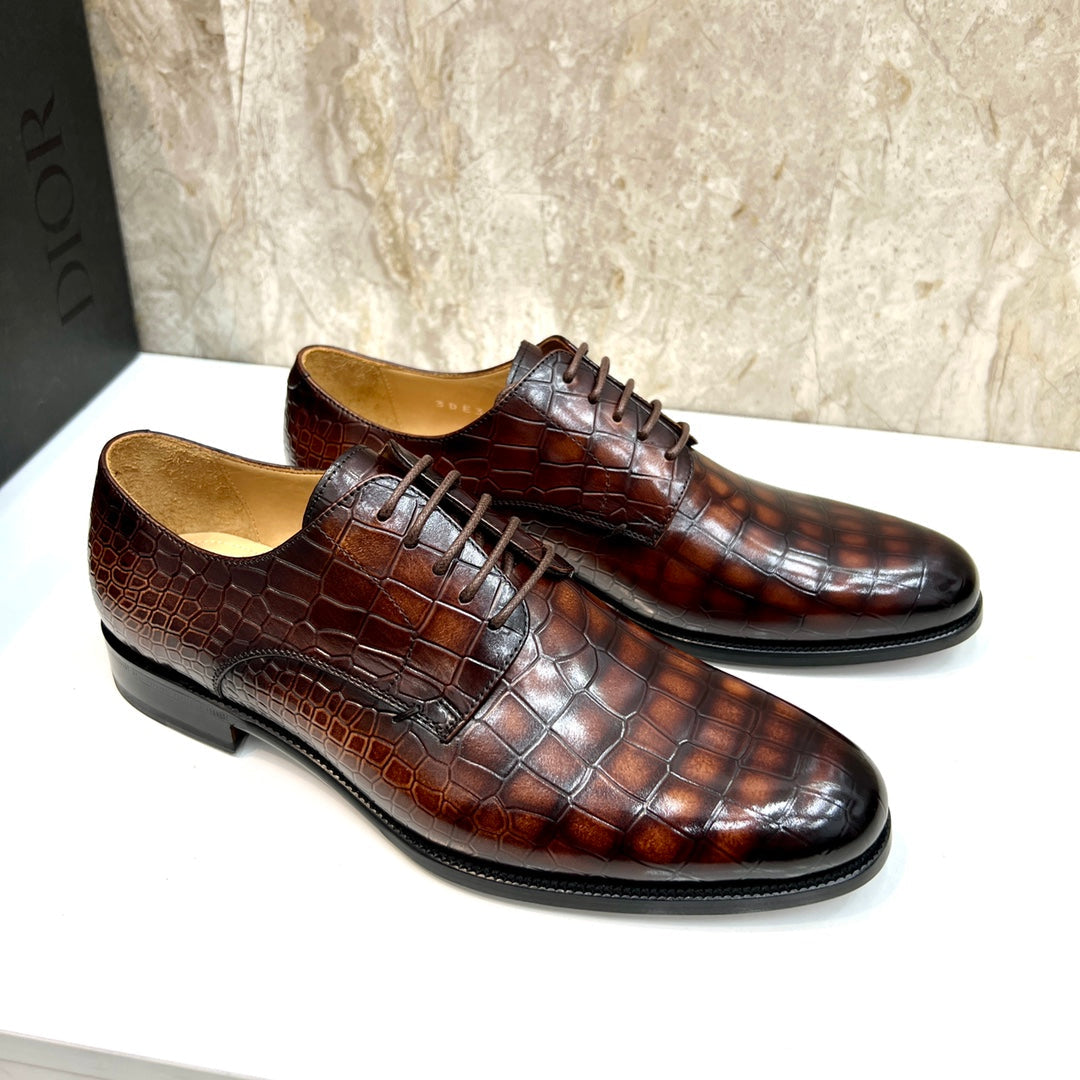 CD CROCODILE MOTIF BASIC OXFORD SIENNA CALFSKIN
