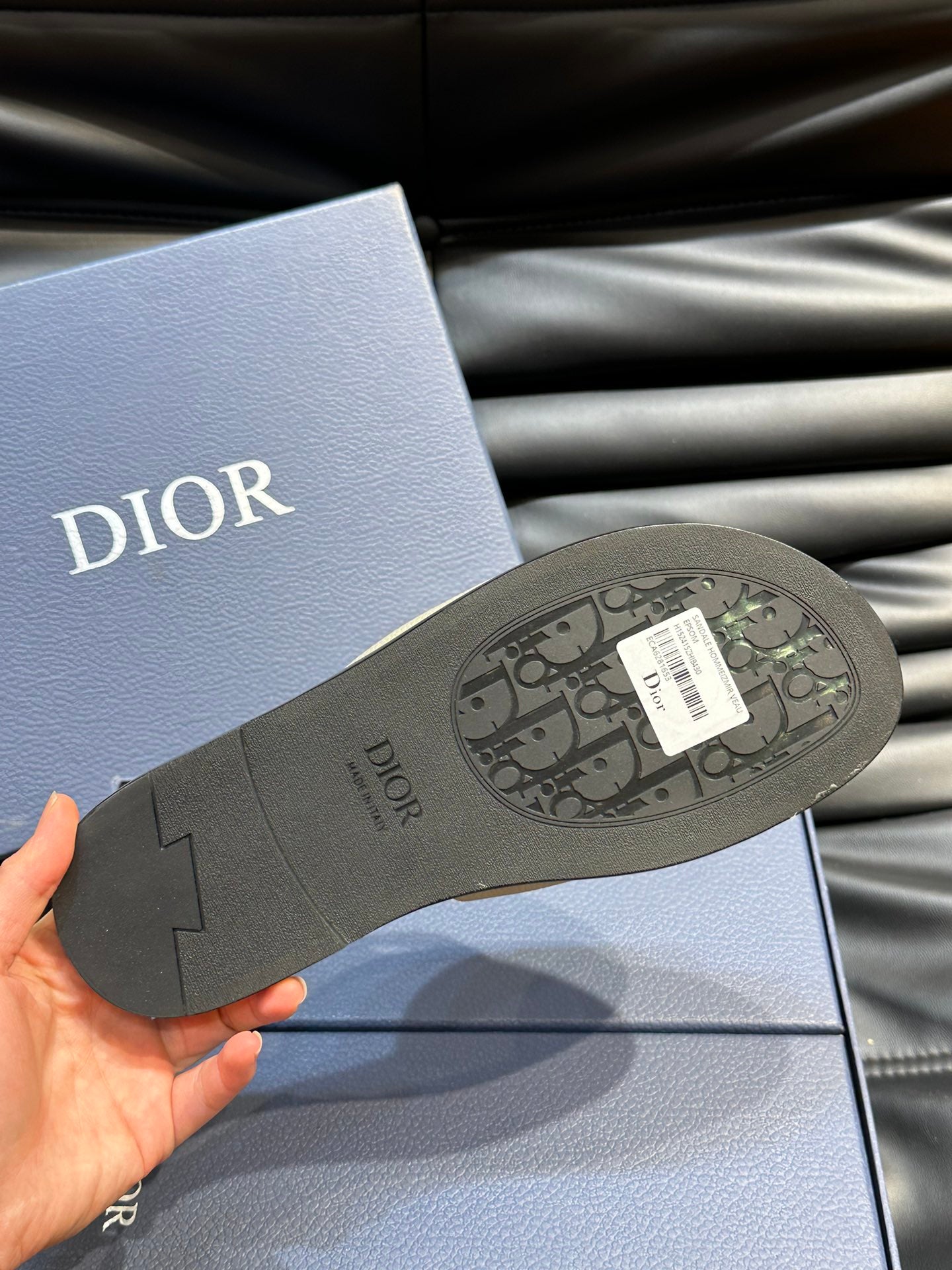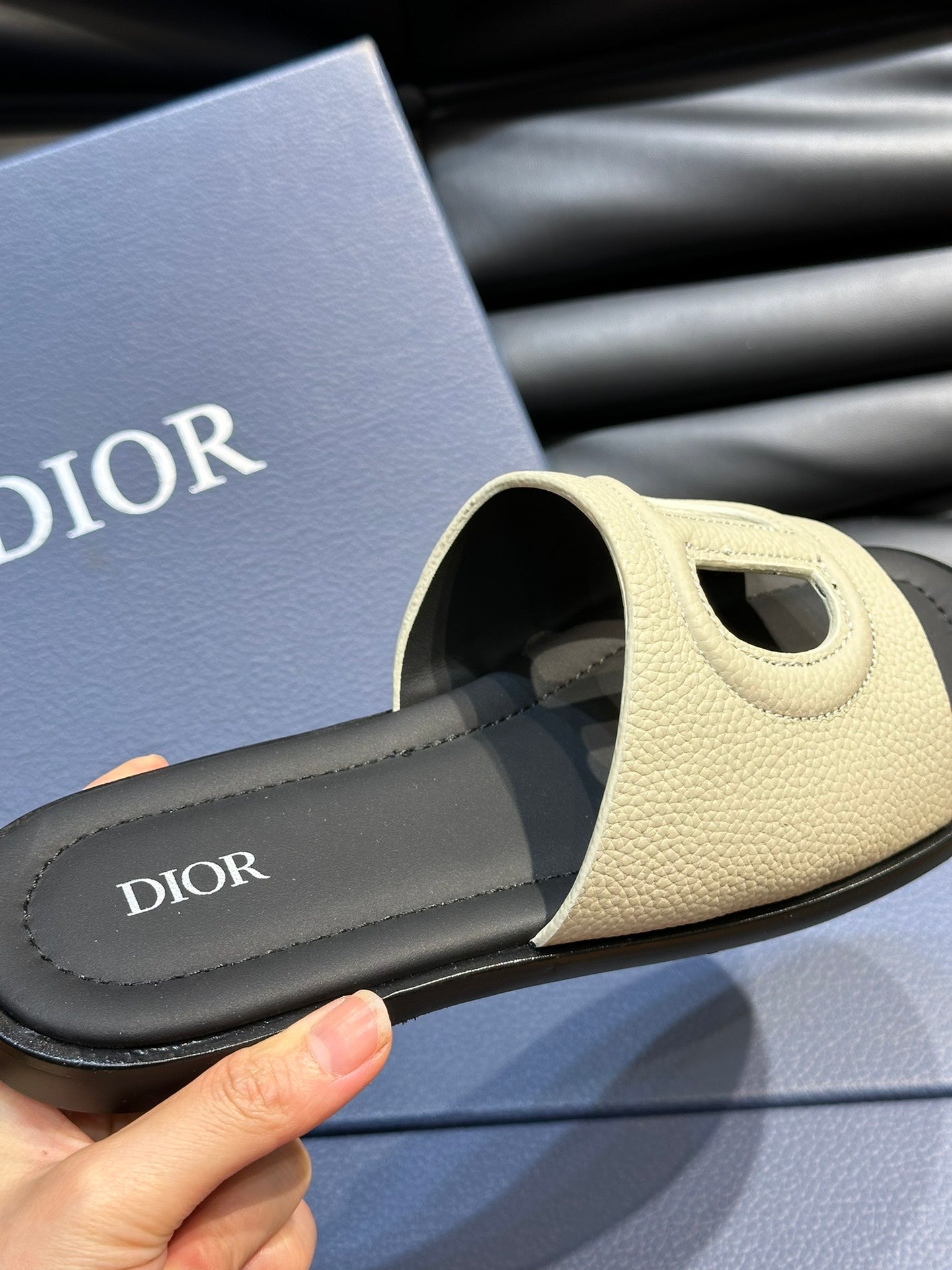 CD D-CLUB SLIDE SLIPPER LIGHT IVORY GRAINED CALFSKIN