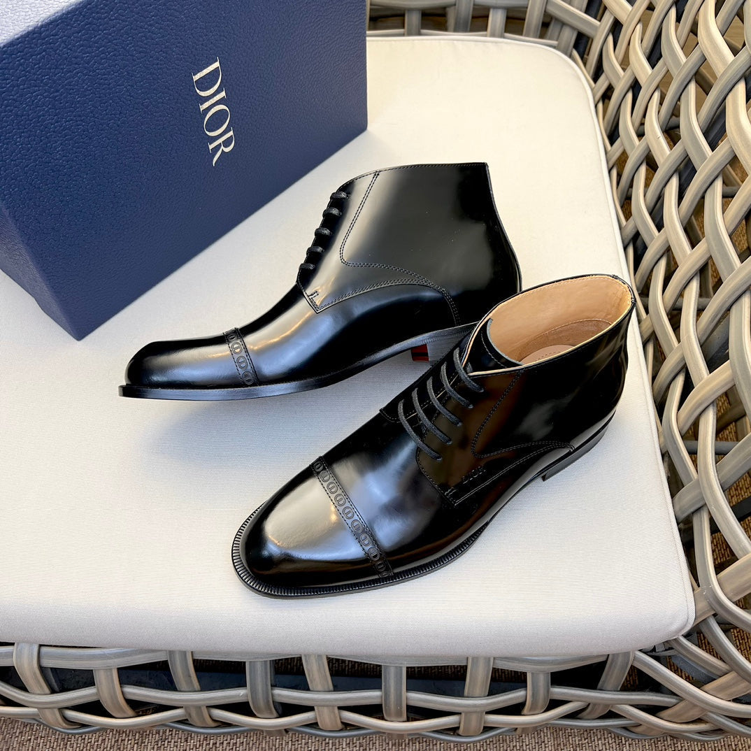 CD HOMME LACE-UP ANKLE BOOT BLACK EMBOSSED CALFSKIN