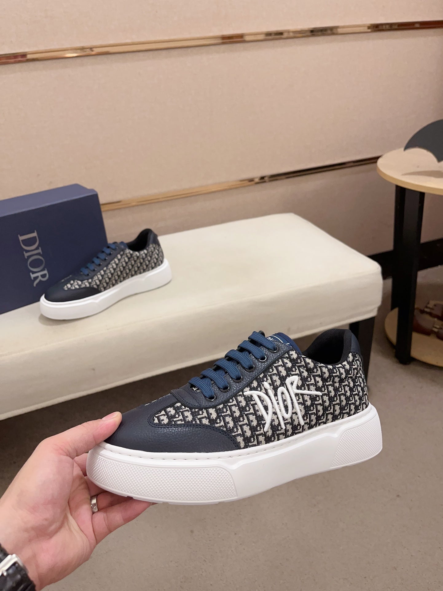 CD HOMME THICK-SOLE SNEAKERS NAVY CALFSKIN