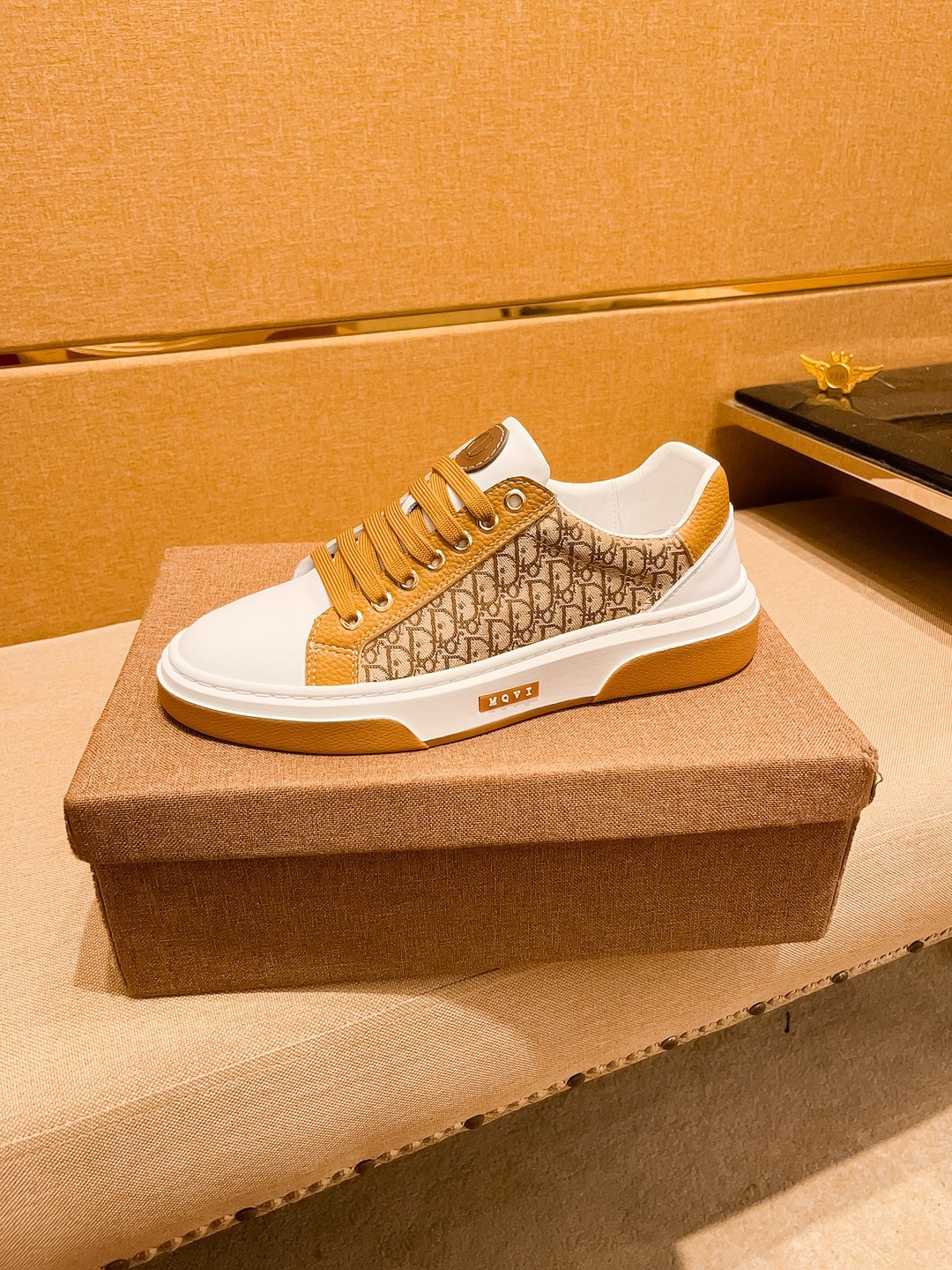 CD LOW TOP SNEAKER BRONZE AND WHITE CALFSKIN