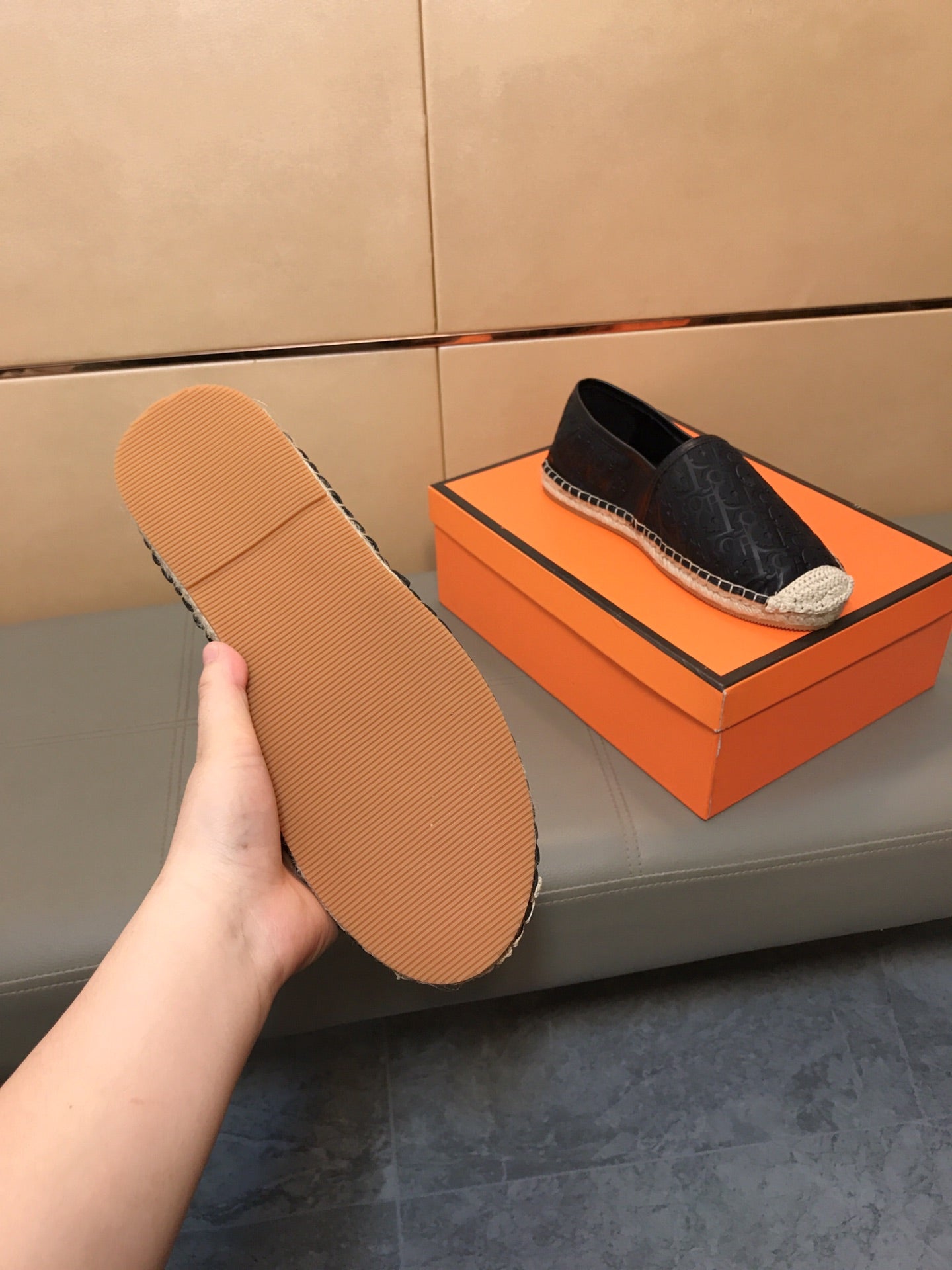 CD PARADISE ESPADRILLE LOAFER BLACK EMBOSSED CALFSKIN