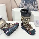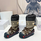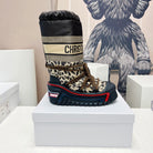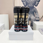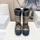 CD Platform Snow Boots Black Beige Cowhide Nylon Fabric 539655