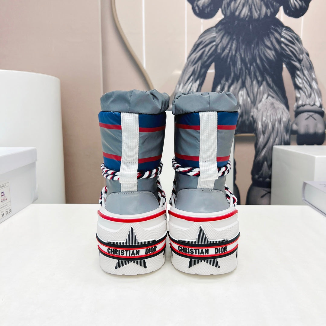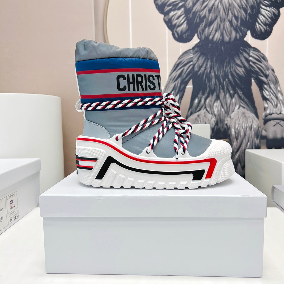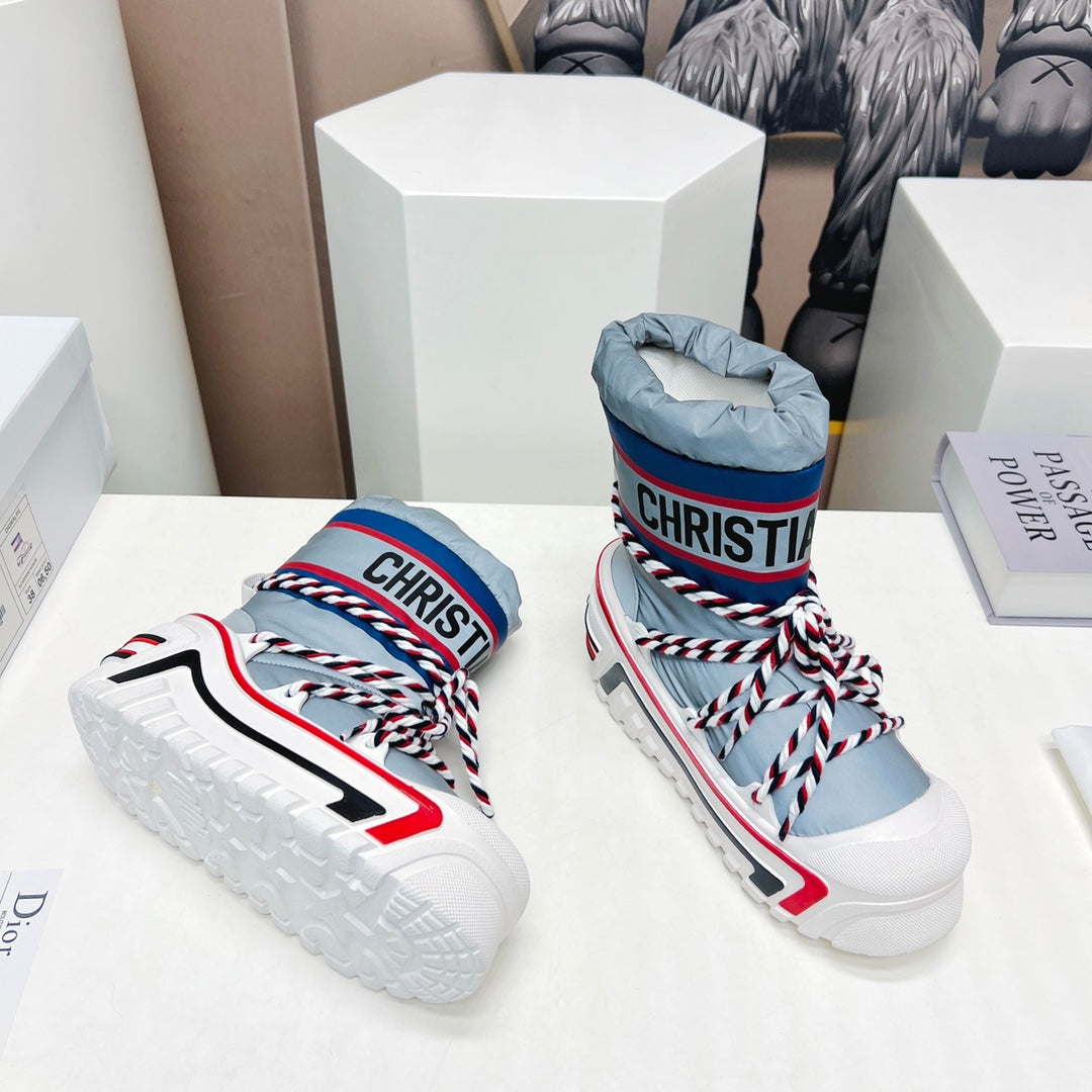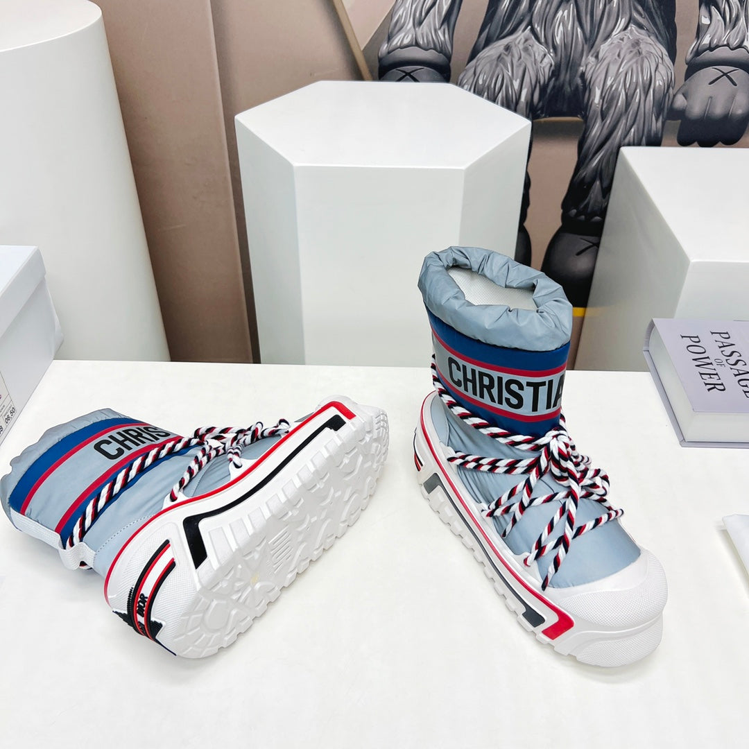 CD Snow Ankle Boots Light Blue Cowhide Nylon Fabric 539659