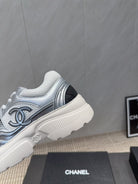 Chanel 25 Sneaker White Blue Silver Mesh Leather 540310