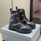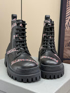 CHUNKY BOOTS IN BLACK SMOOTH CALFSKIN RED LOGO PRINT