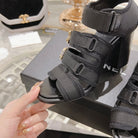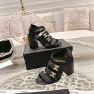 cc slingback sandal tripe strap 60 black canvas calfskin