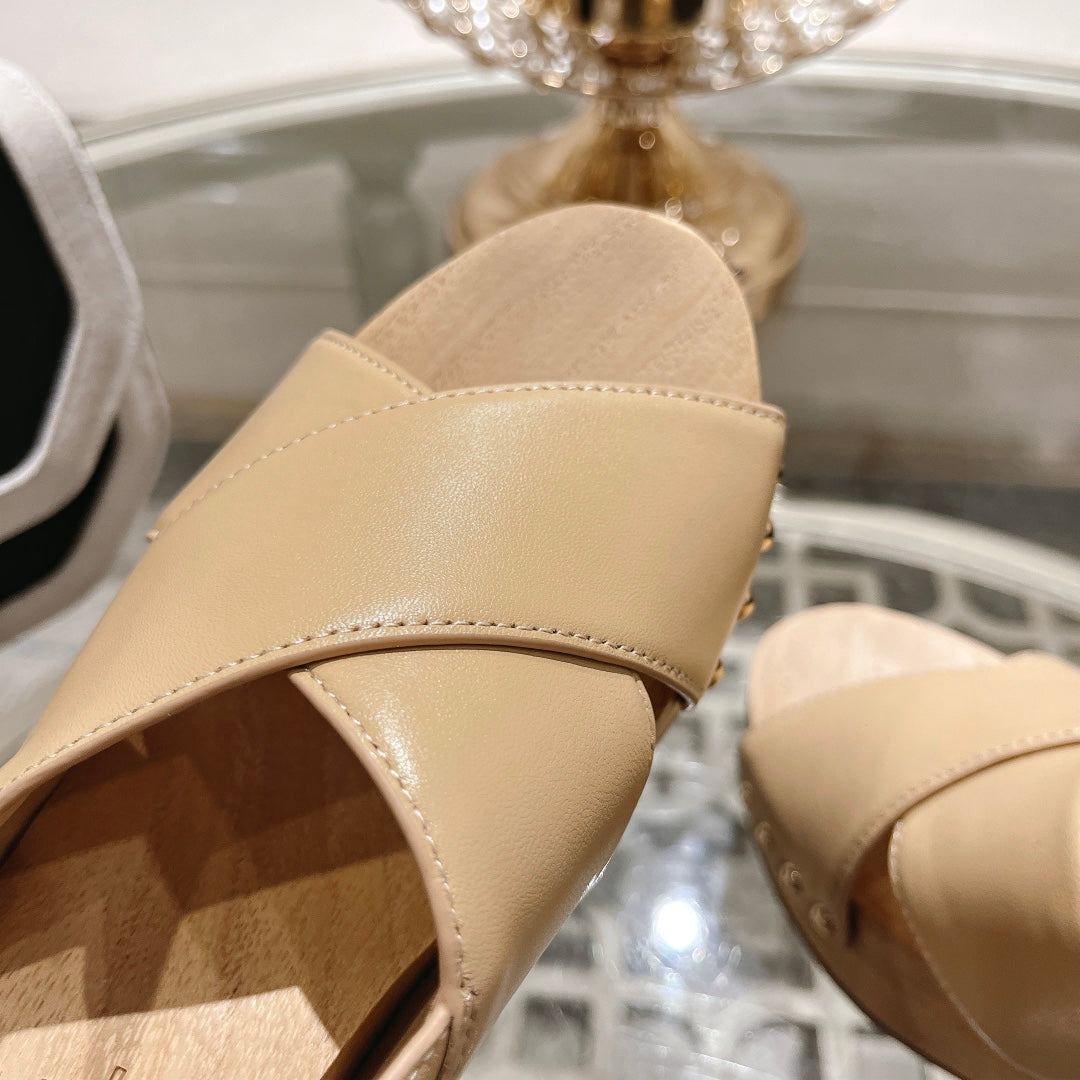 platform sandal 90 cross beige calfskin