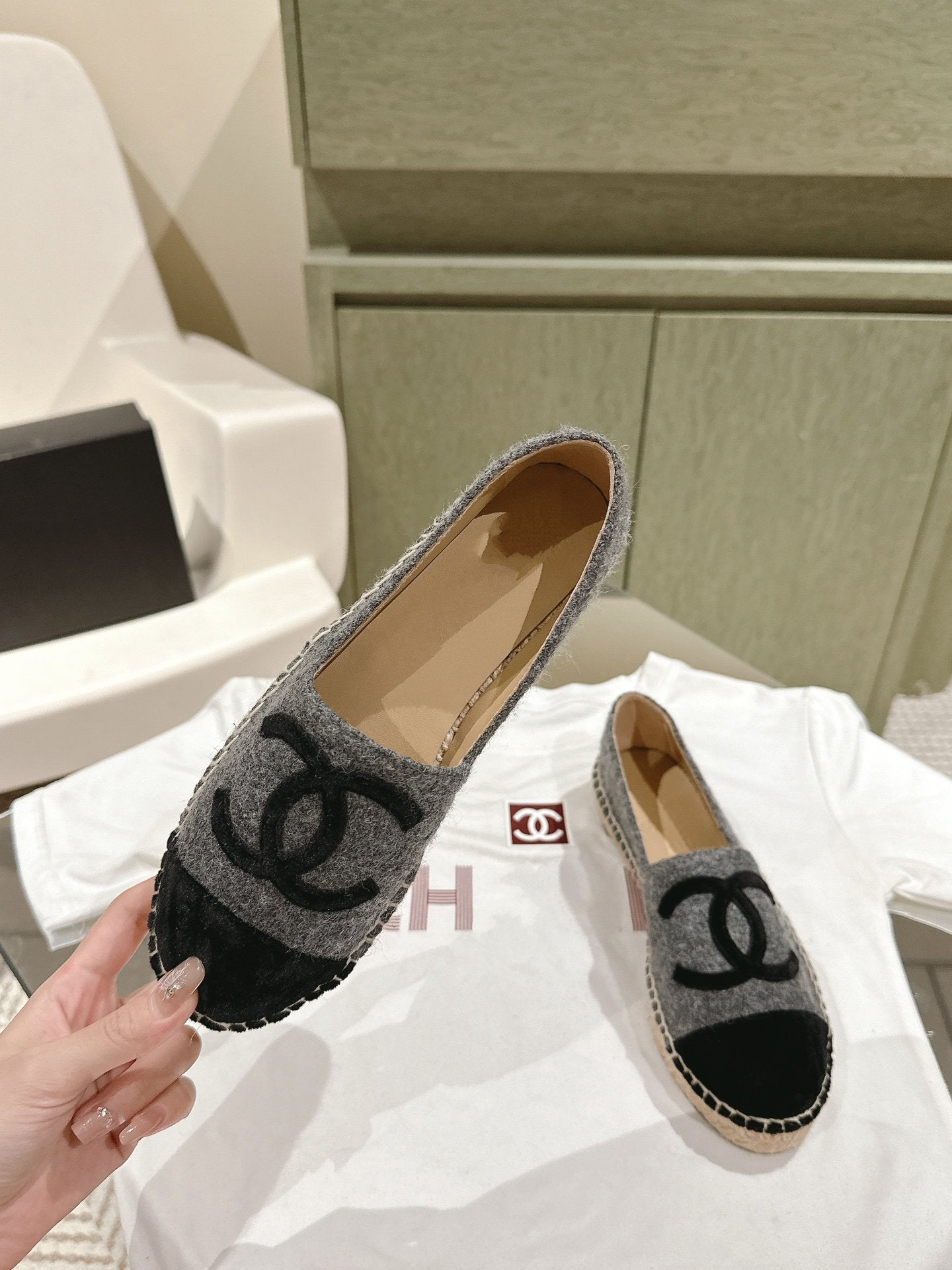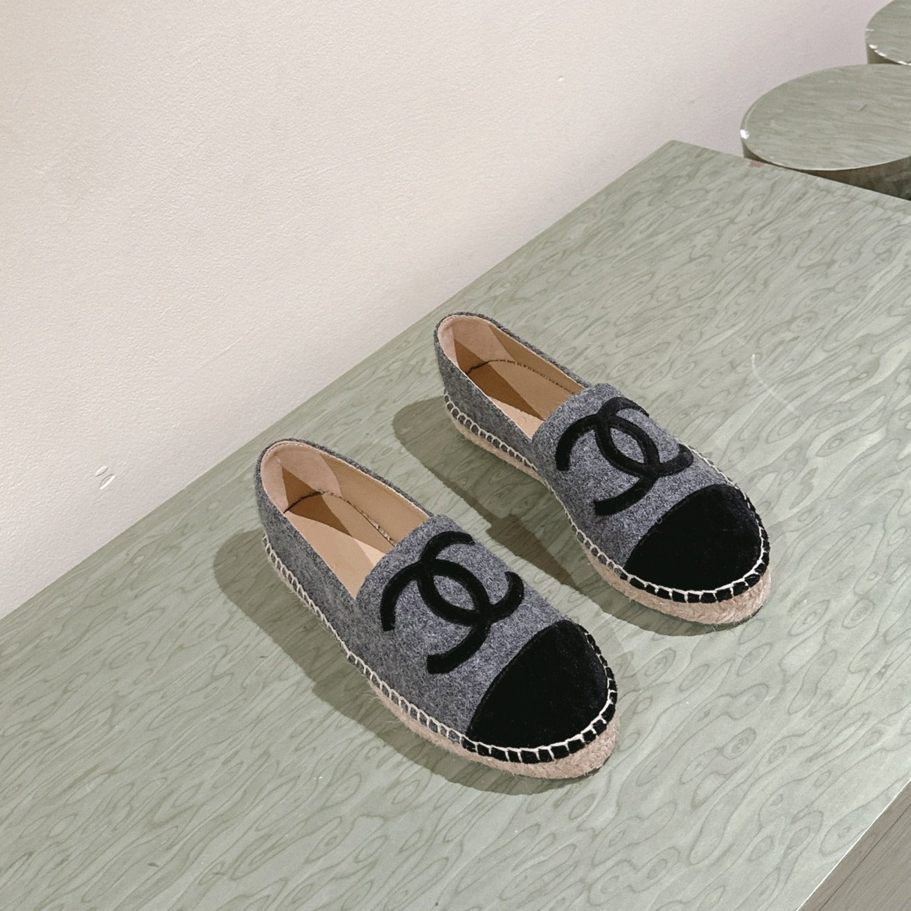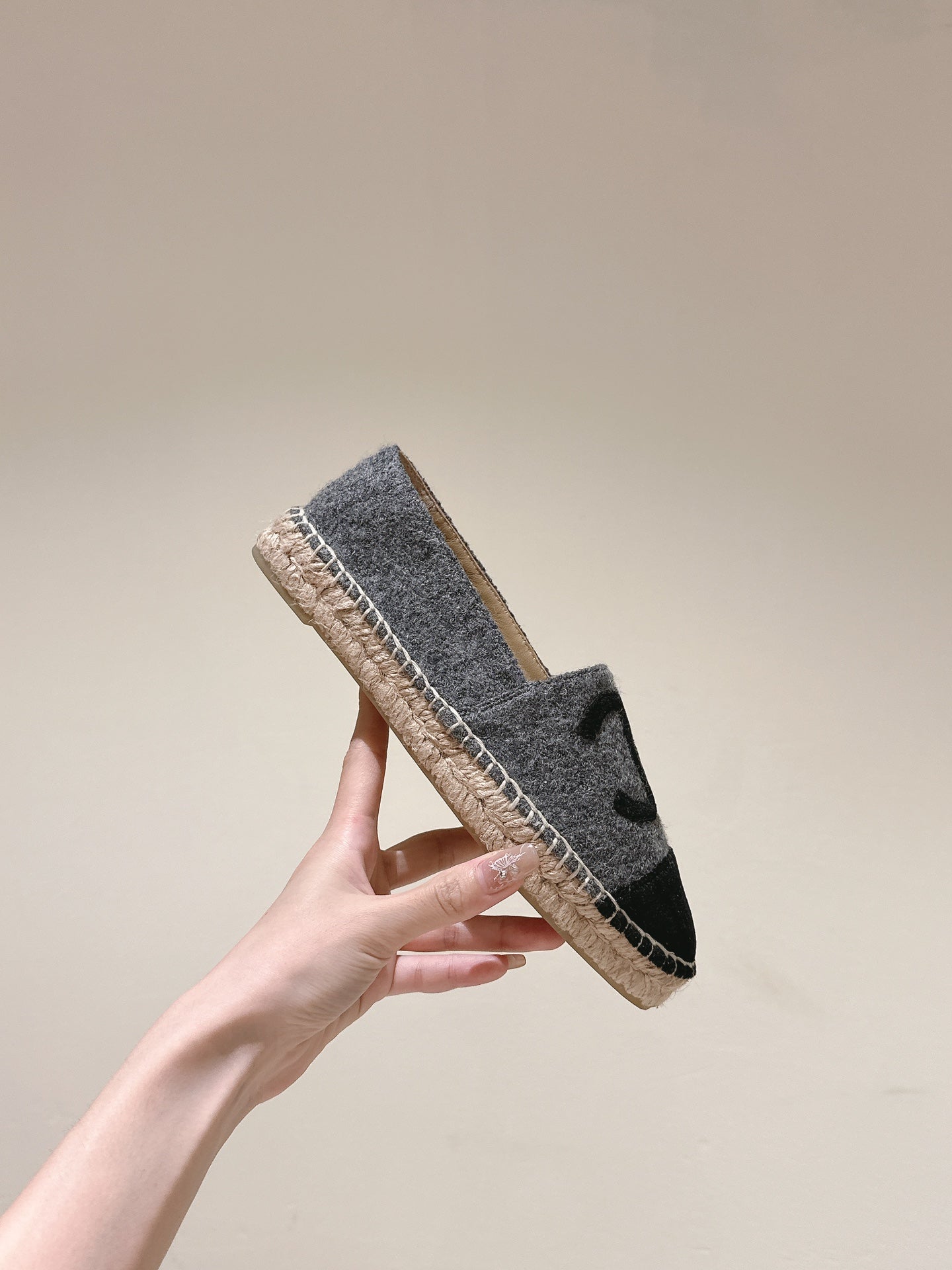 espadrilles dark grey cotton tweed black suede